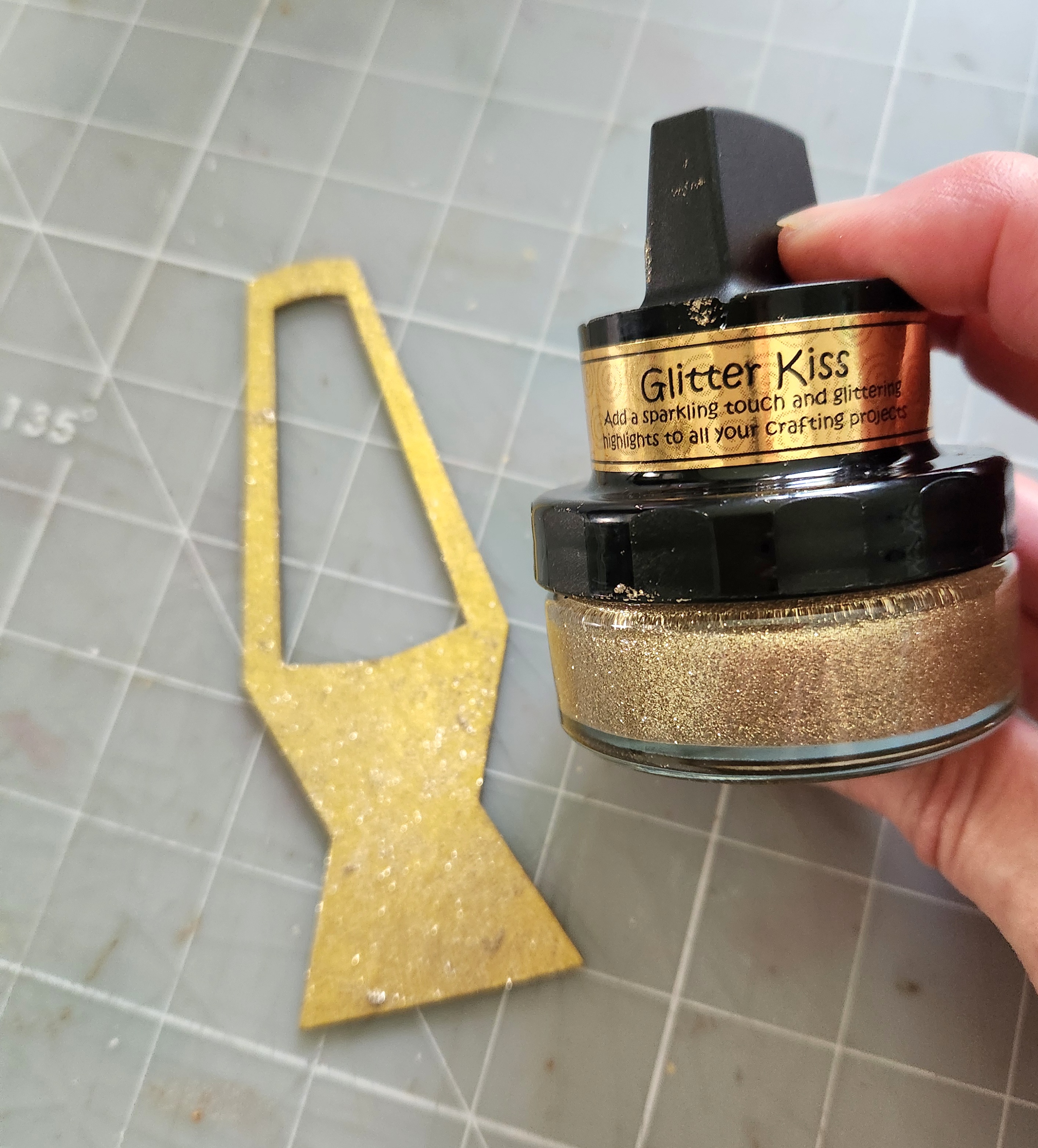 On top of my shaker piece, I applied some Cosmic Shimmer Glitter Kiss over the paint. This gives a nice sparklely touch! Here's a photo: