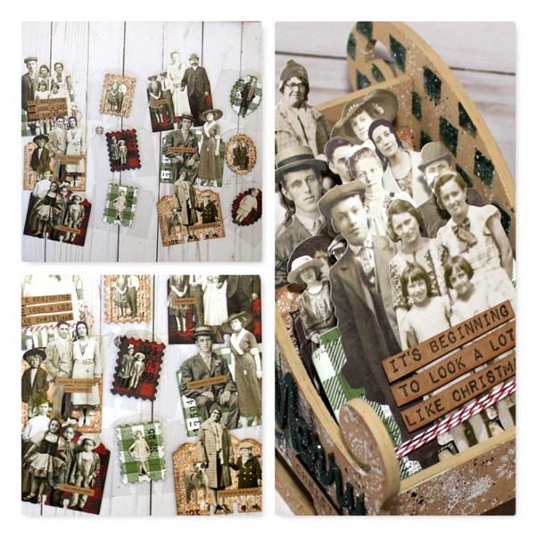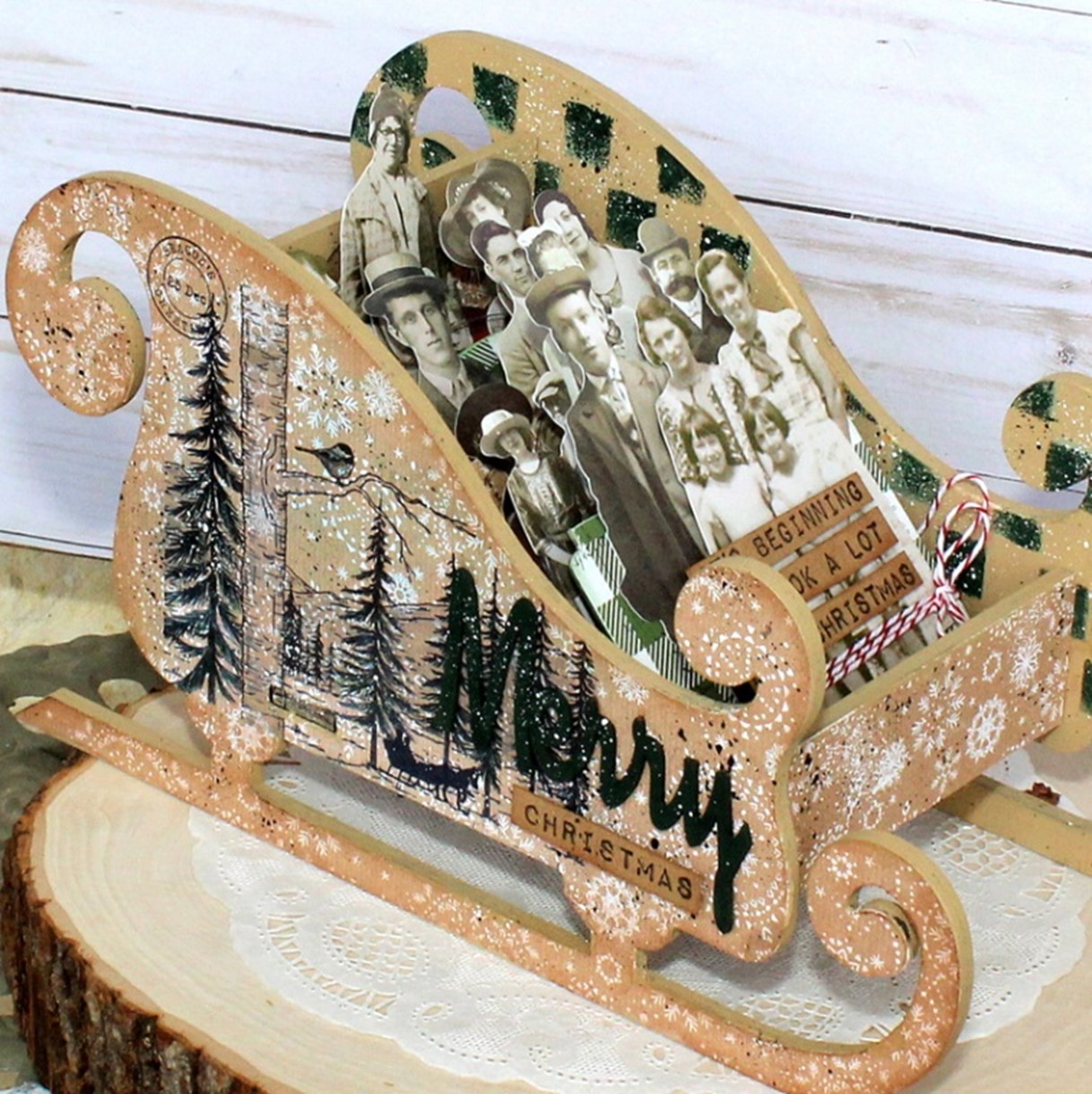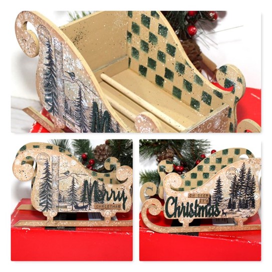 3. Adhere the sleigh cut out to the birch wood cut out. Do both sides.