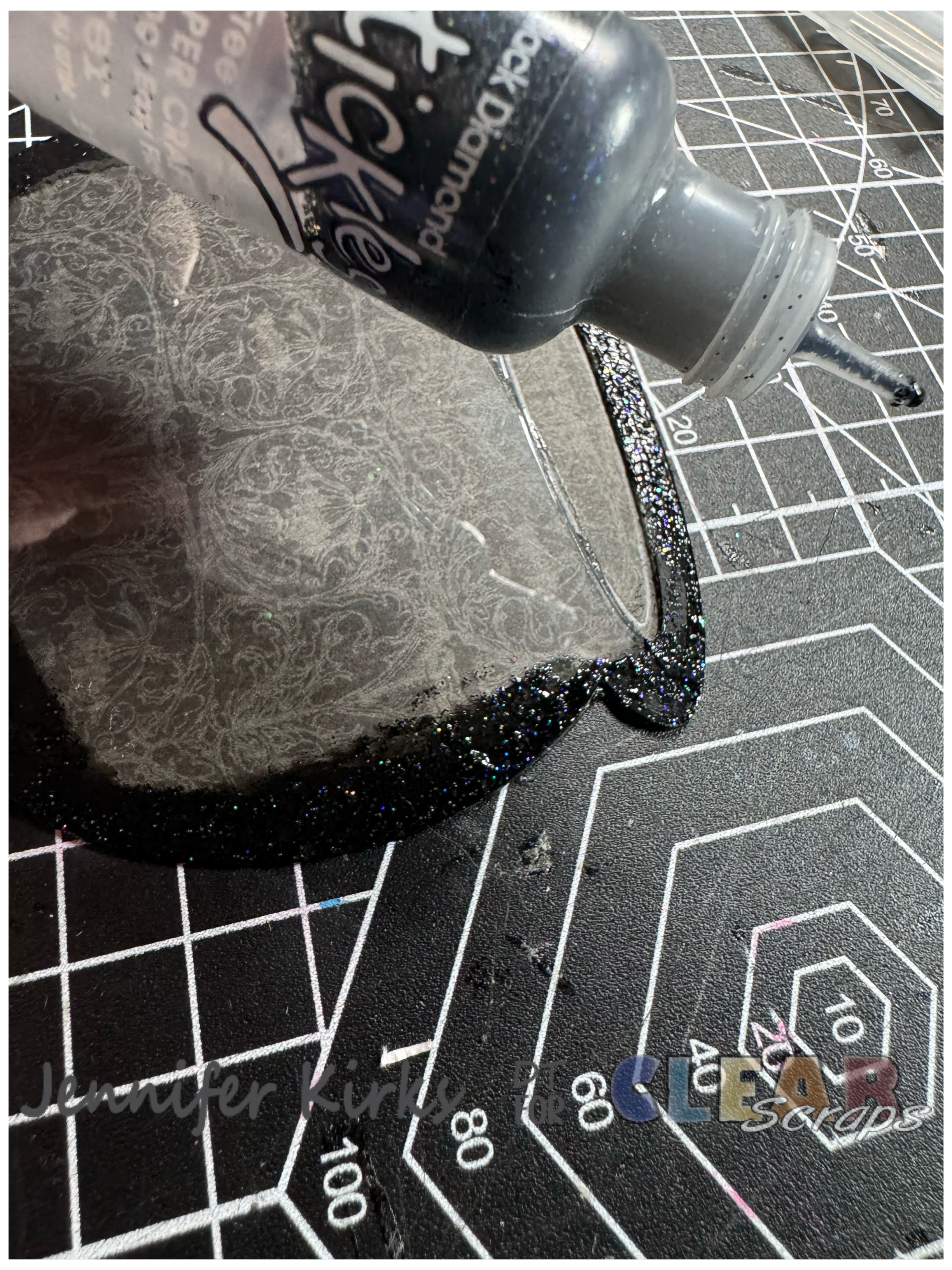 With a desire to enrich my haunted house index box, I embarked on transforming a set of chipboard tab dividers. First I painted each divider on both sides with black chalk. Using carefully chosen scraps, I adorned every side with intricate details—blooming flowers, flowing ribbons, and an array of embellishments. This meticulous process resulted in dividers that not only organize but also enchant, adding a touch of eerie elegance to my collection.