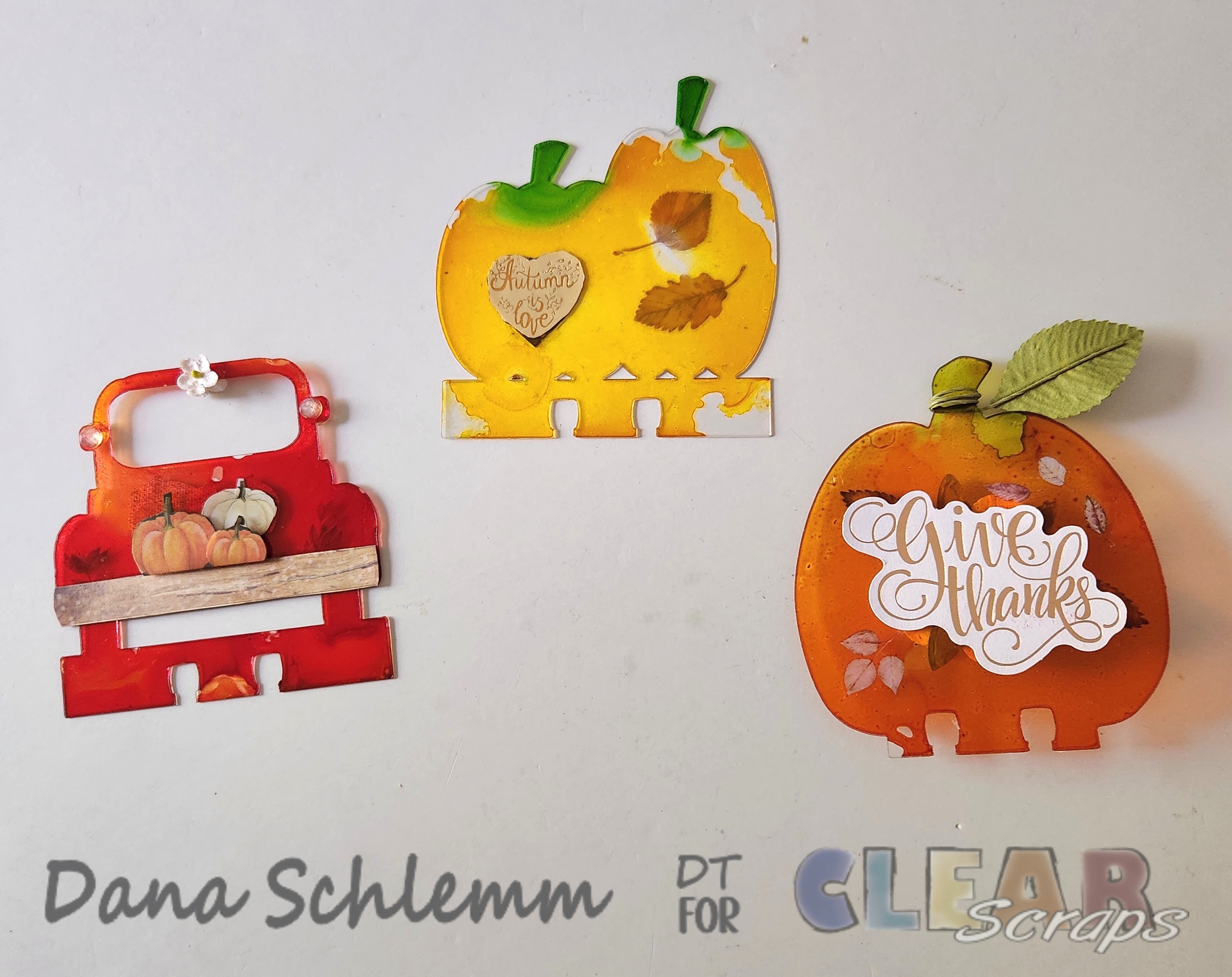 Dana here! Hope you are enjoying your Summer so far. I know that fall is still a ways away. But I wanted to create and share these new Clear Scraps Acrylic Memory-Dex Divider Cards! Working with Acrylic can be intimidating but I assure you they are easy and fun to play around with different background effects. You can see all the newest products available Click here