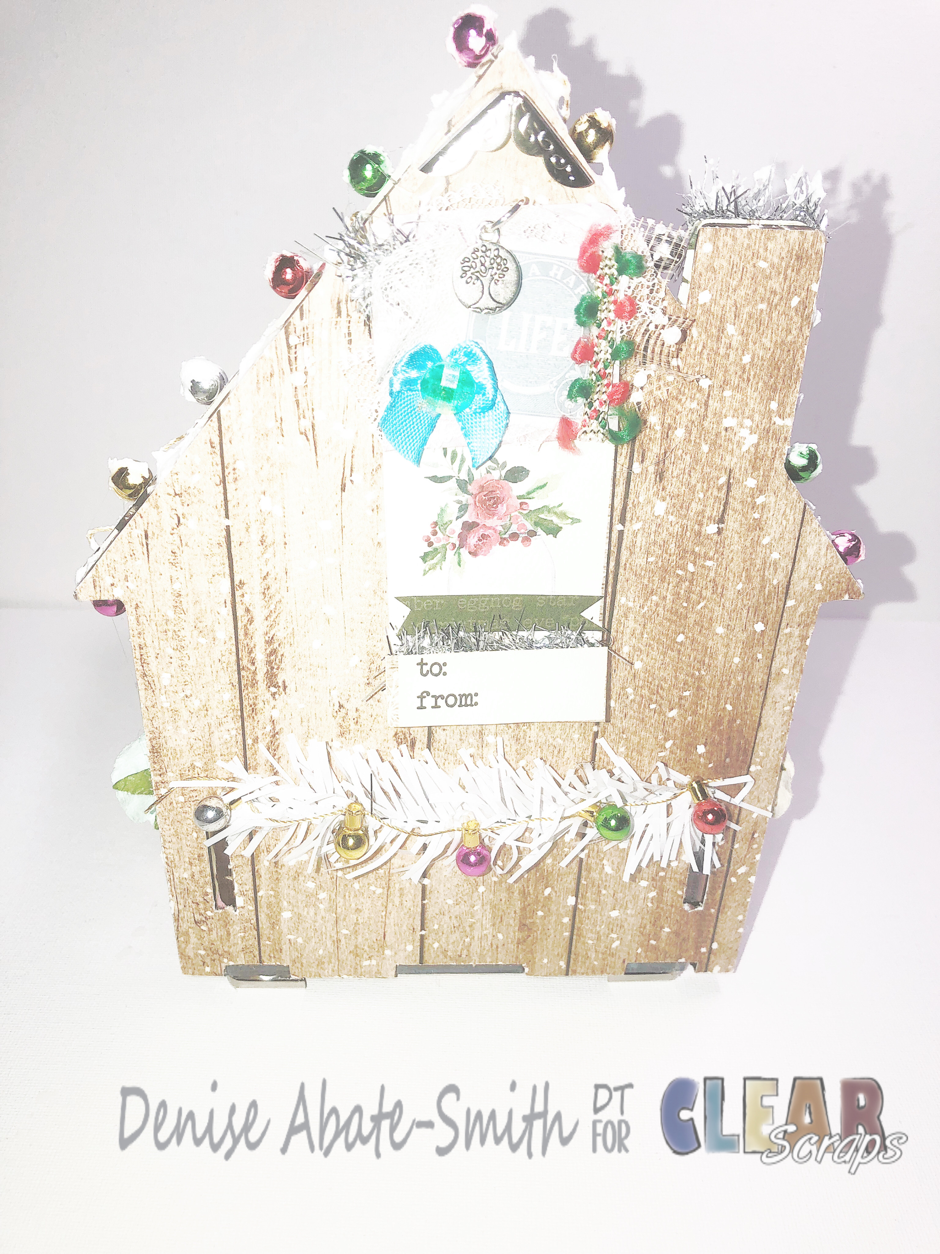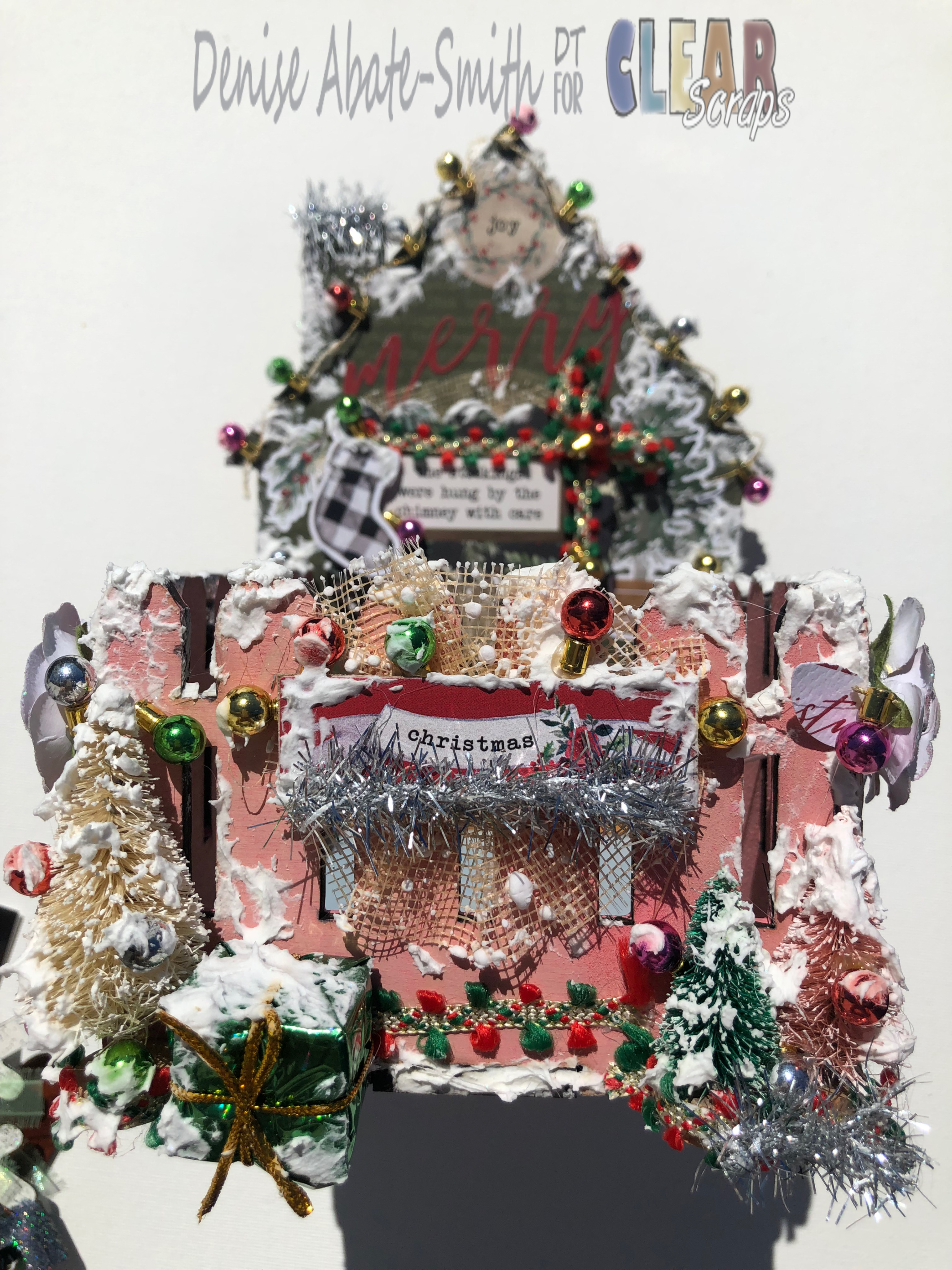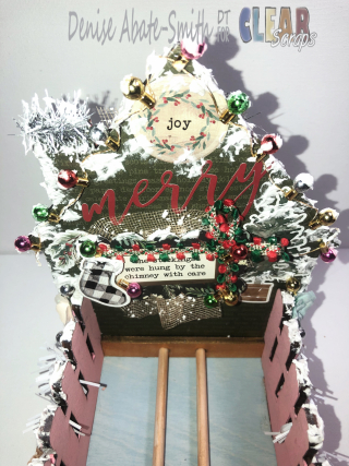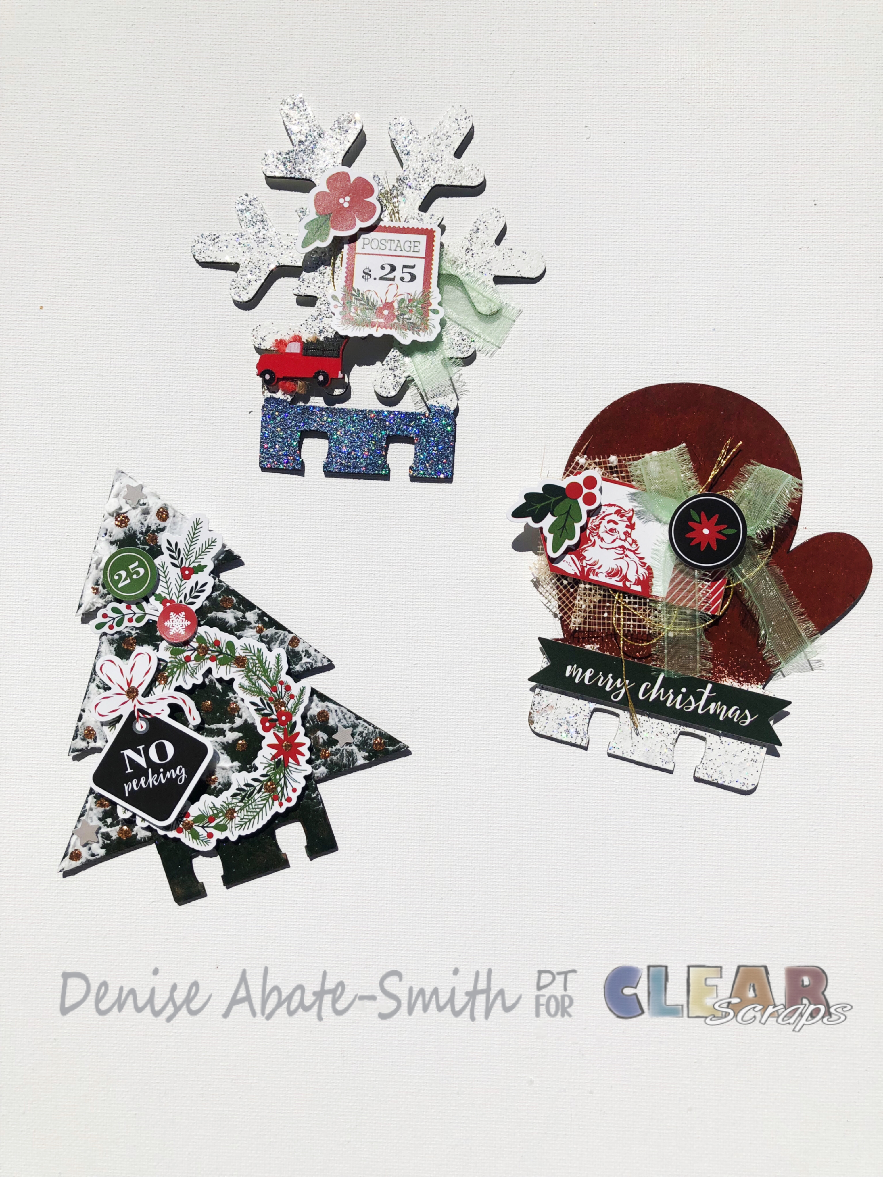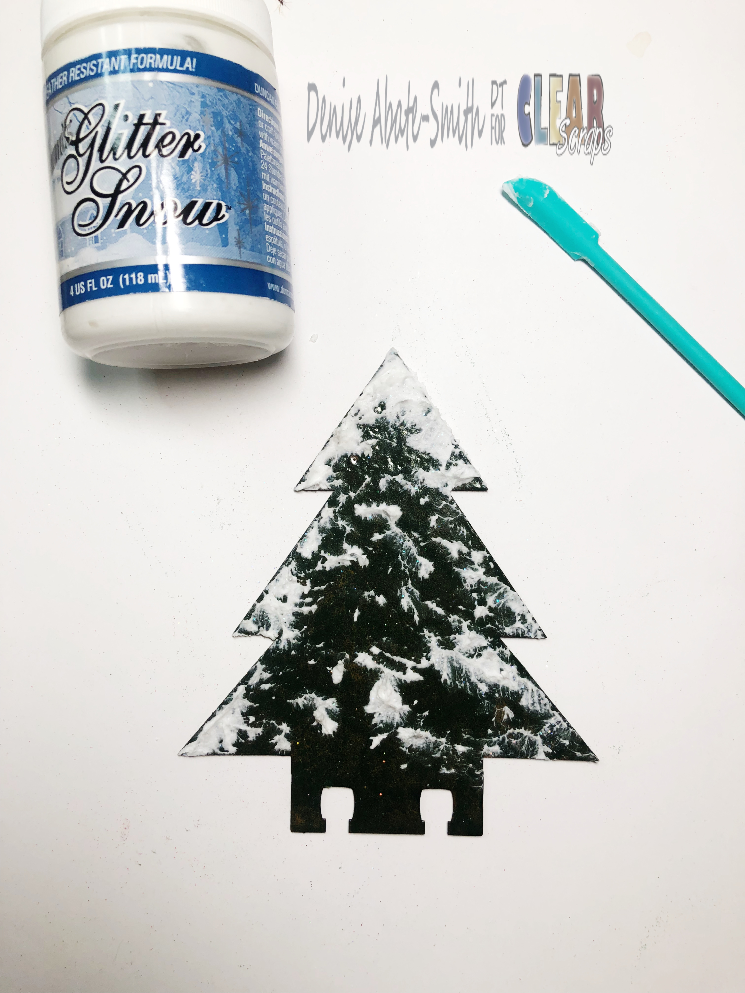 I went to my Christmas crafting stash and raided all of the trimmings and snow Glitter medium and cut apart bulb trim.
