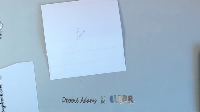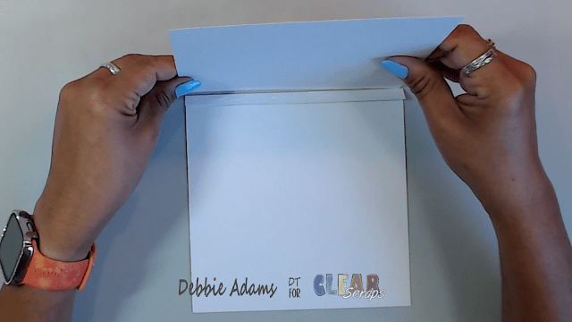 Adhere the Scored piece (tab ) to one of the 6 1/2 x 6 1/2 inch pieces.