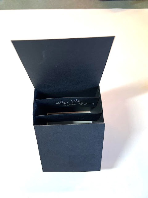 Next cut out two little tabs at 4 1/2 x 1 1/2 inches, score on 1/4 inch on each end for both tabs. These fit inside your box.