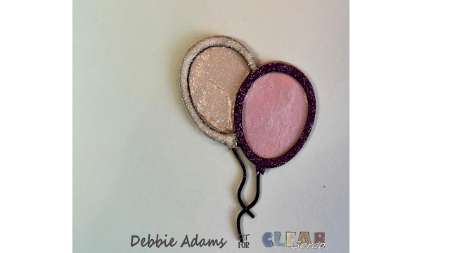 chipboard Balloons I place glitter around the edges and the middle part, which is the back of the balloon, I added some Nuvo Mousse embellishment and a glittered paste. I let dry for a few hours.