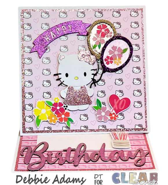 Next I decorated the inside of the balloons with some flower stickers and I added the cute little Hello Kitty holding the Balloons. Isn't this card just adorable? I really enjoyed creating this card and using the