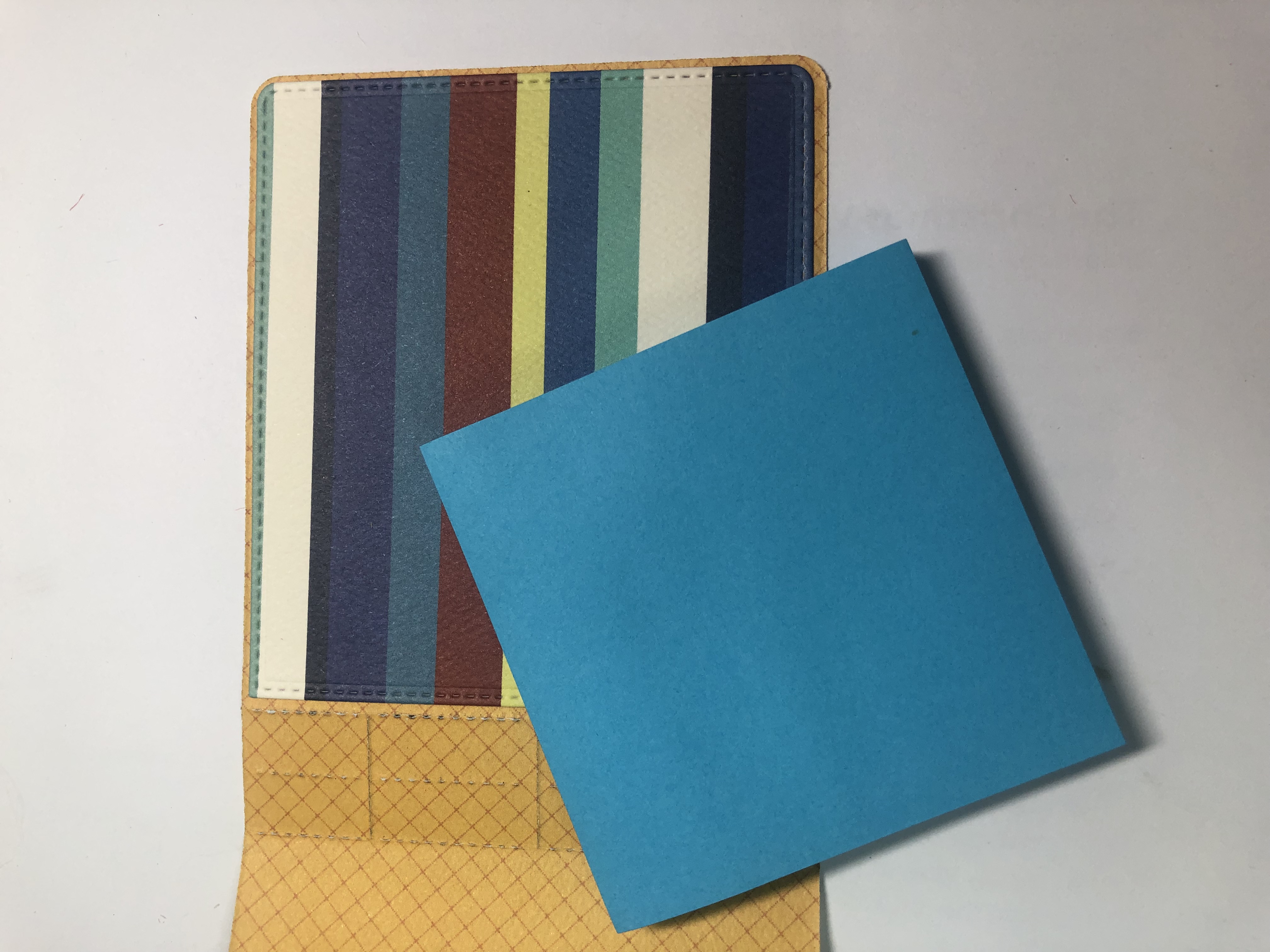 I applied wet glue to the very back of the sticky notepad and attached it to the inside of the back of the book.