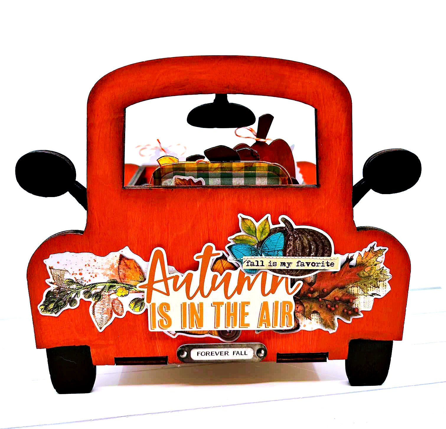 On the front a few stickers and the sentiment–couldn't resist a little "license plate" looking sticker also for a nice extra touch. Giving all the fall vibes!