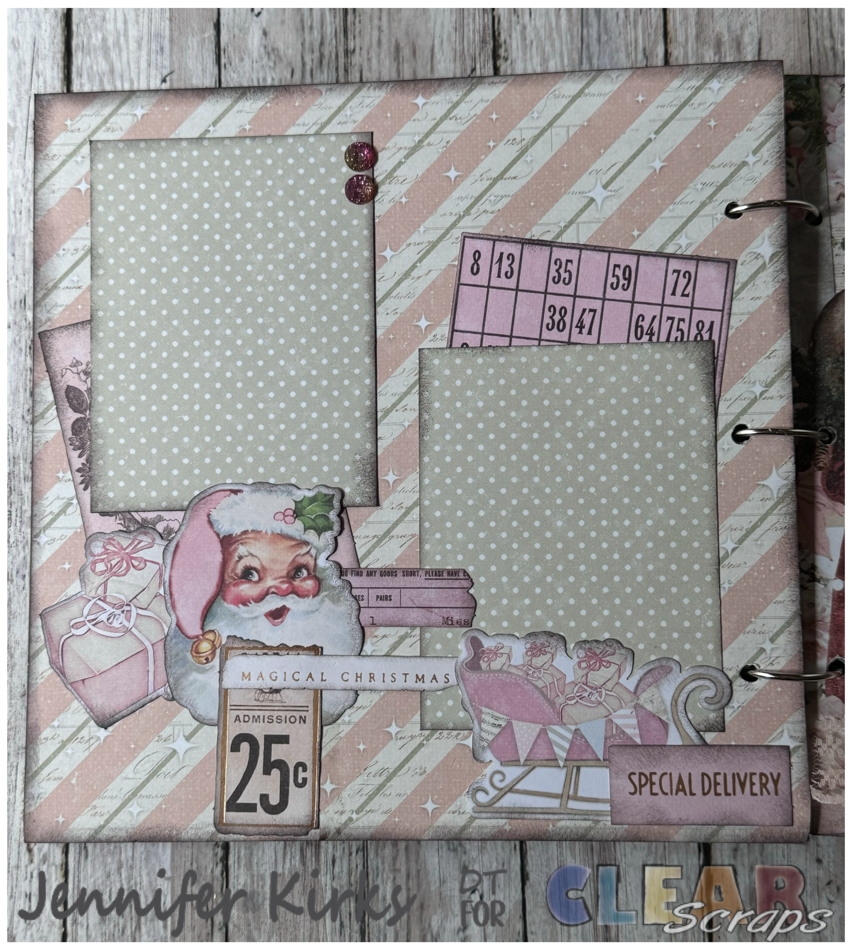 It's Jennifer here on the blog today, bringing you a delightful 8×8 Christmas album in the most enchanting shades of pink, cream, and green. I'm absolutely smitten with this paper and have used it on several projects (with more to come later). The nontraditional Christmas colors in this album are simply captivating! I've also sprinkled in several of the new holiday chipboard elements throughout the album, adding that extra bit of magic. Keep an eye out for those special touches that bring it all to life!