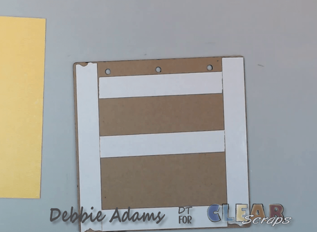 To begin your album place double back tape adhesive to each chipboard piece front and back prior to covering the chipboard mini album pages, unless you are using glue adhesive than do one page at a time.