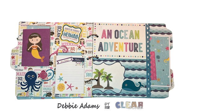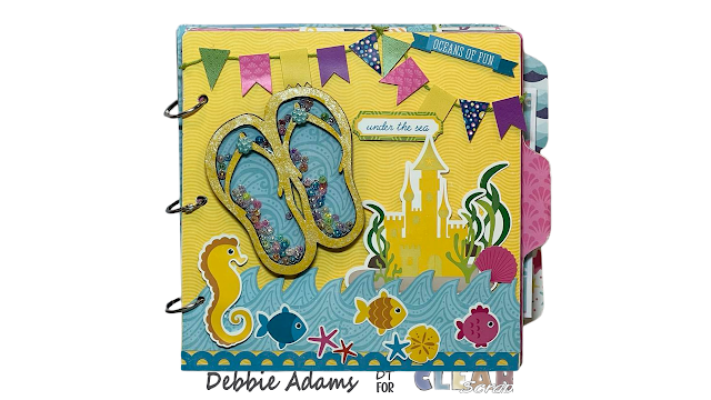 It's Debbie here today with a cute summer 8×8 chipboard album. With summer coming to a close and school getting ready to start. I decided to end August with a cute Summer type ocean/swimming theme using the Clear Scraps Chipboard 8×8 3 tabbed album along with the cute little Mini Shaker Flip Flops. I've been wanting to create this album using this paper along with this Chipboard album and I figured this would be a perfect way to end the summer. I hope you enjoy the step by step tutorial and gain some inspiration for your albums. You can always click on the name of the product and go directly to the store.