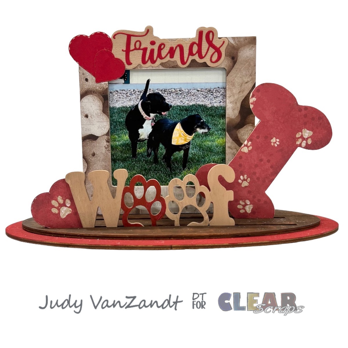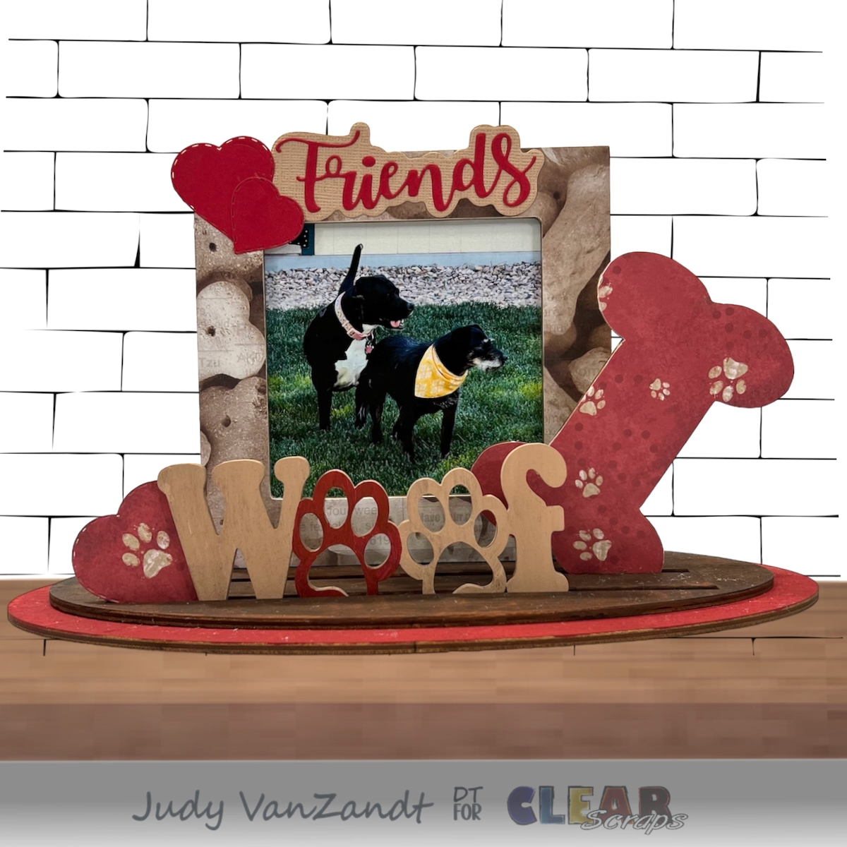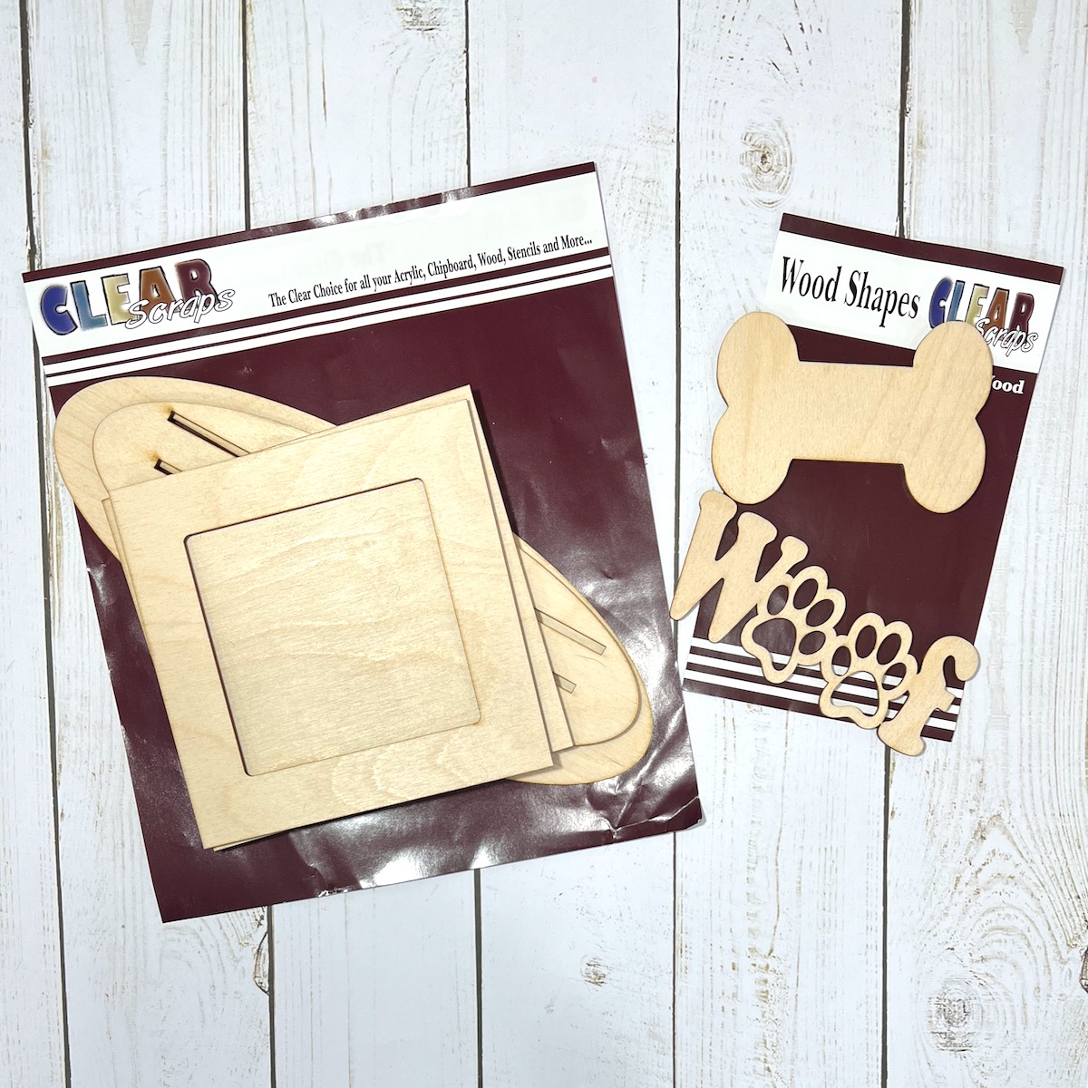 Since I am highlighting a photo of my dog Abby and my grand puppy Jonas I went with the 3D Frameable Square Frame and the Woof Word n Shape set.