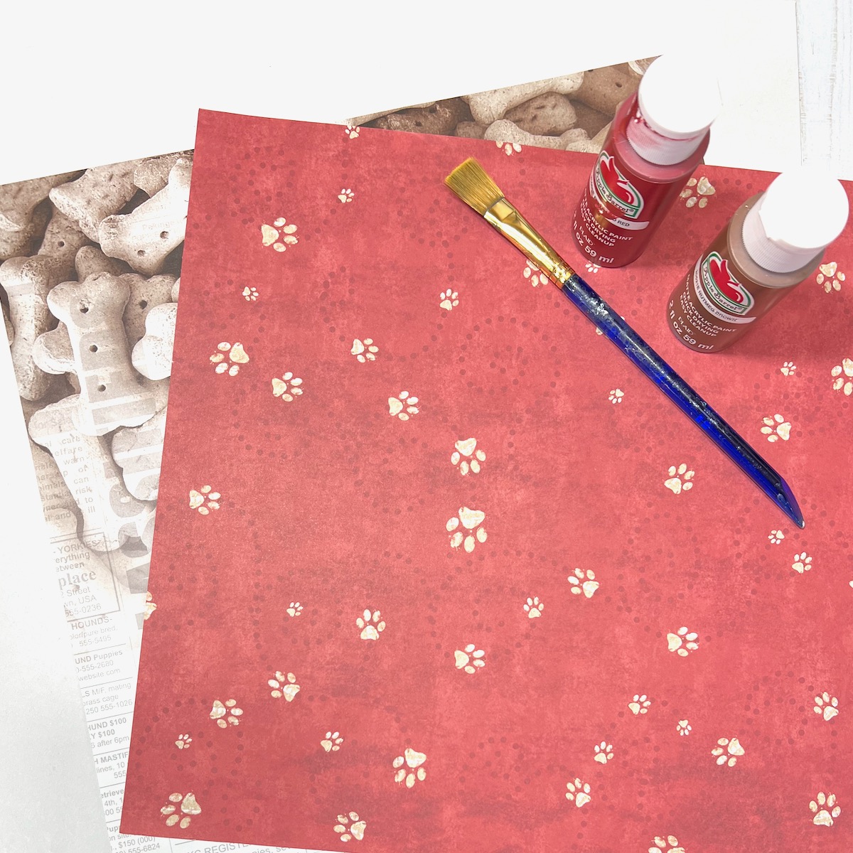 I pulled out 2 patterned papers, a paint brush and acrylic paints.