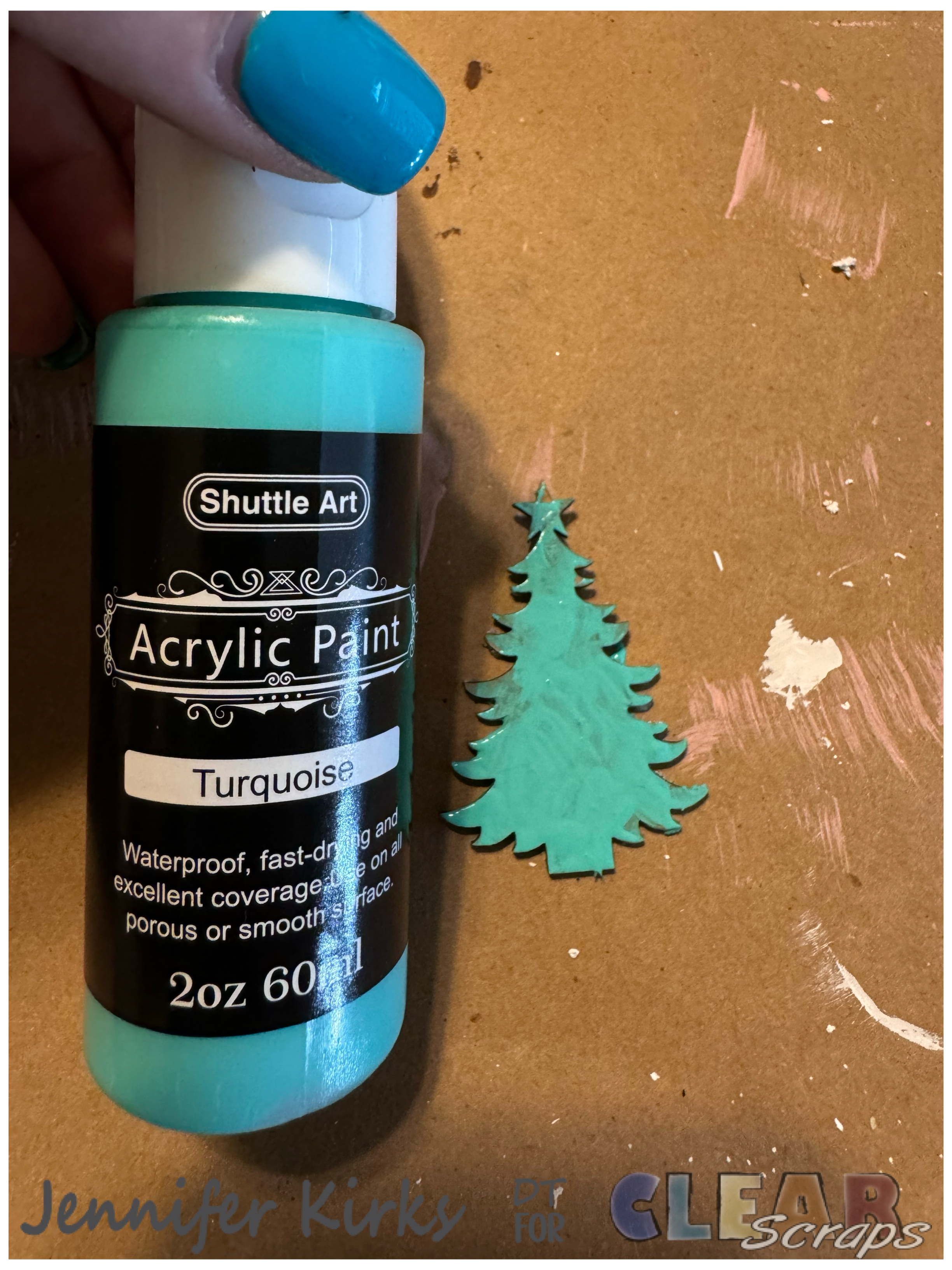 Next, I painted the tree in a beautiful turquoise shade to complement the paper and adorned it with colored cabochons and glittering Stickles, adding that perfect touch of festive sparkle. Then I added it to the tag.