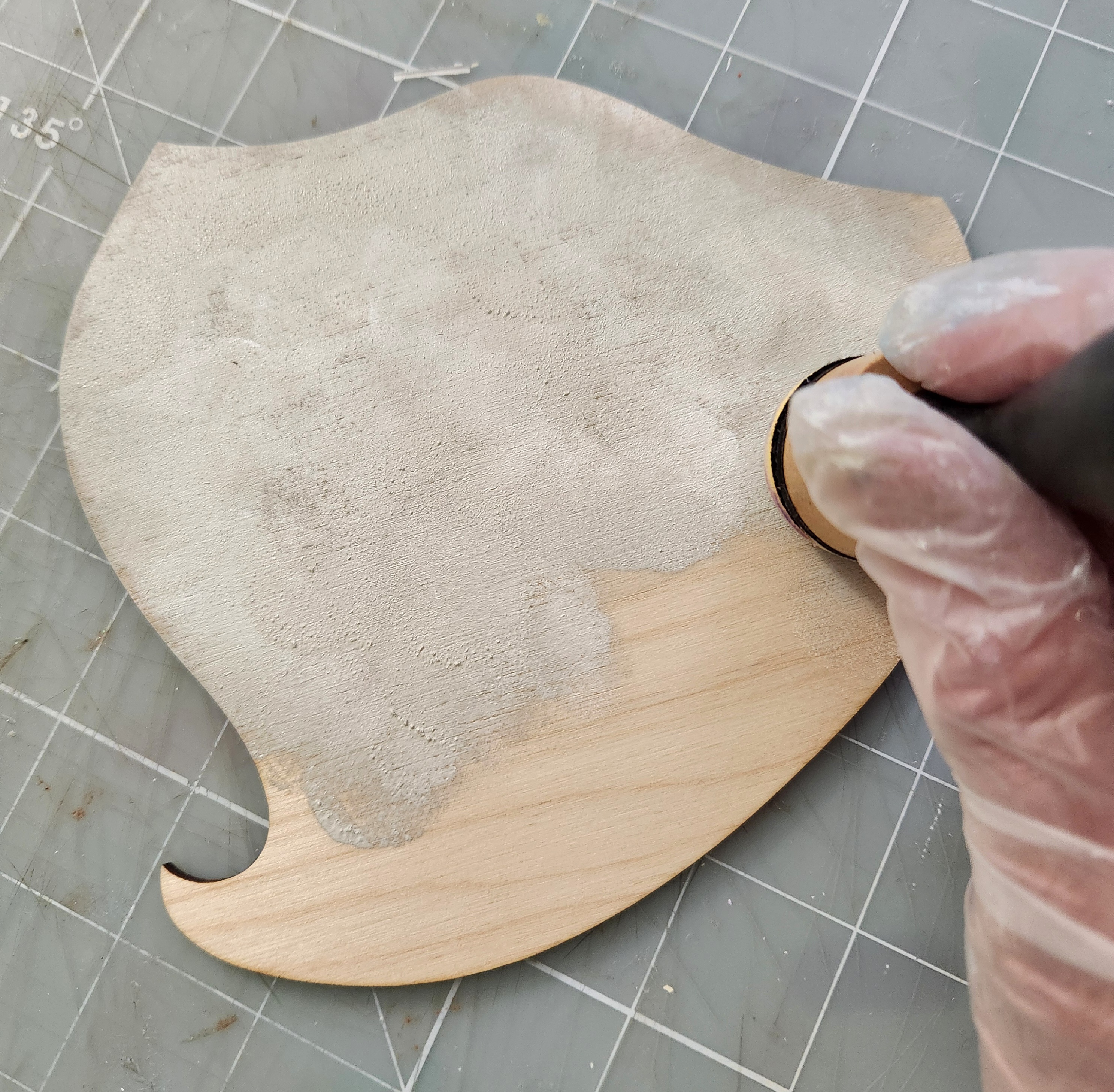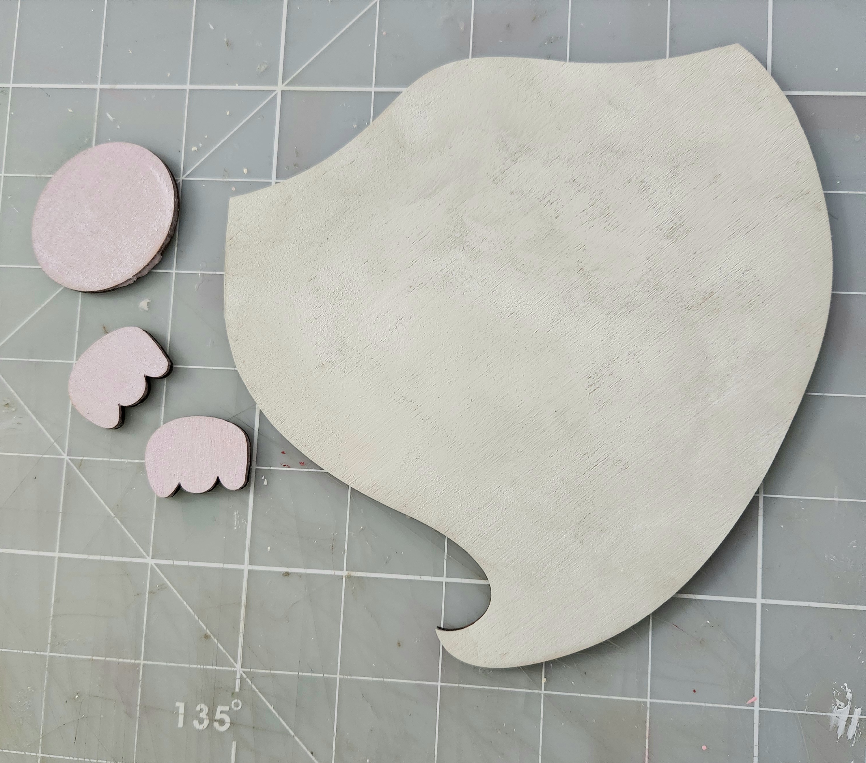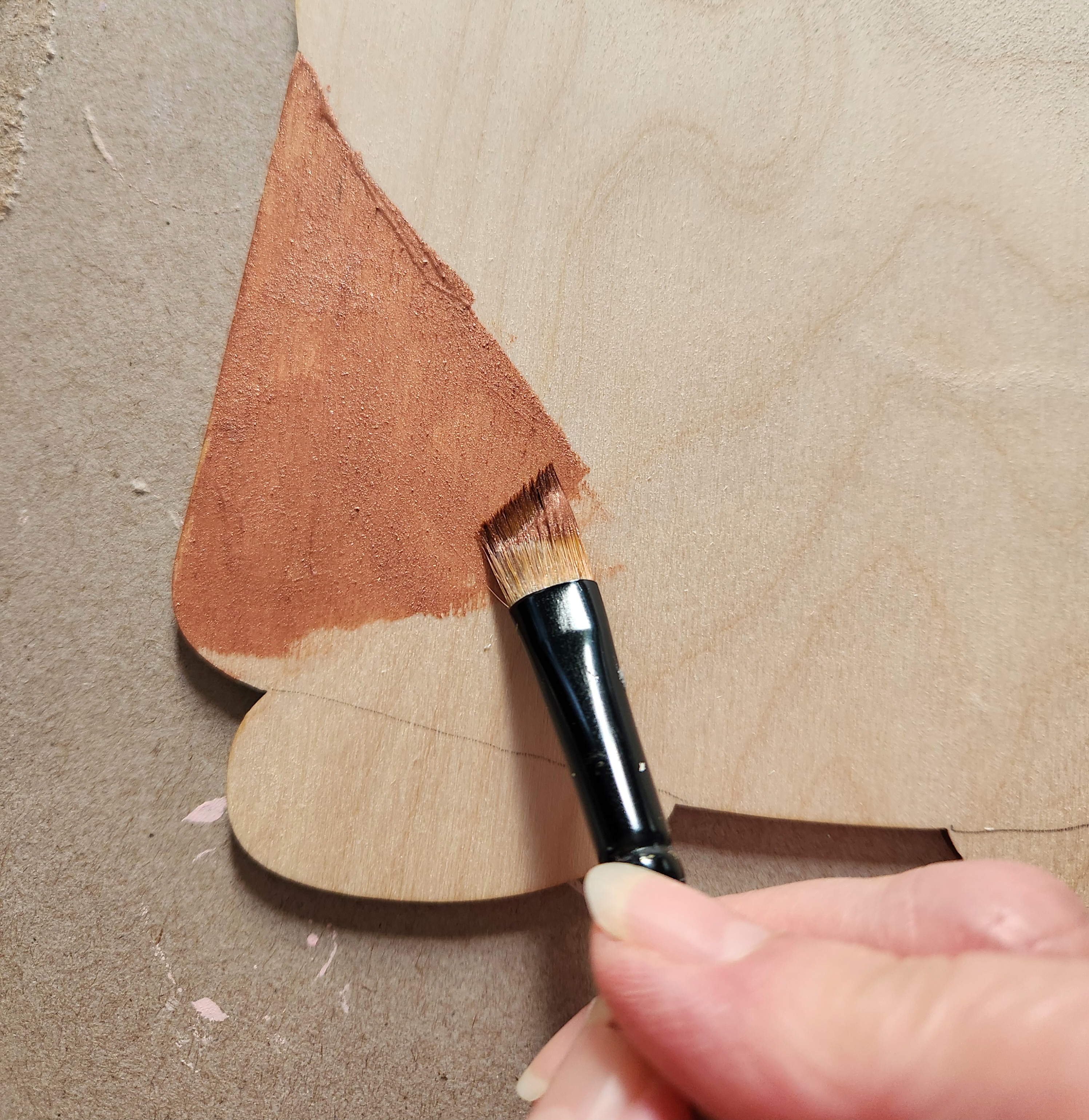 Take the beard Wood piece, and apply both white and light taupe acrylic paints on the surface using a sponge. See photos: