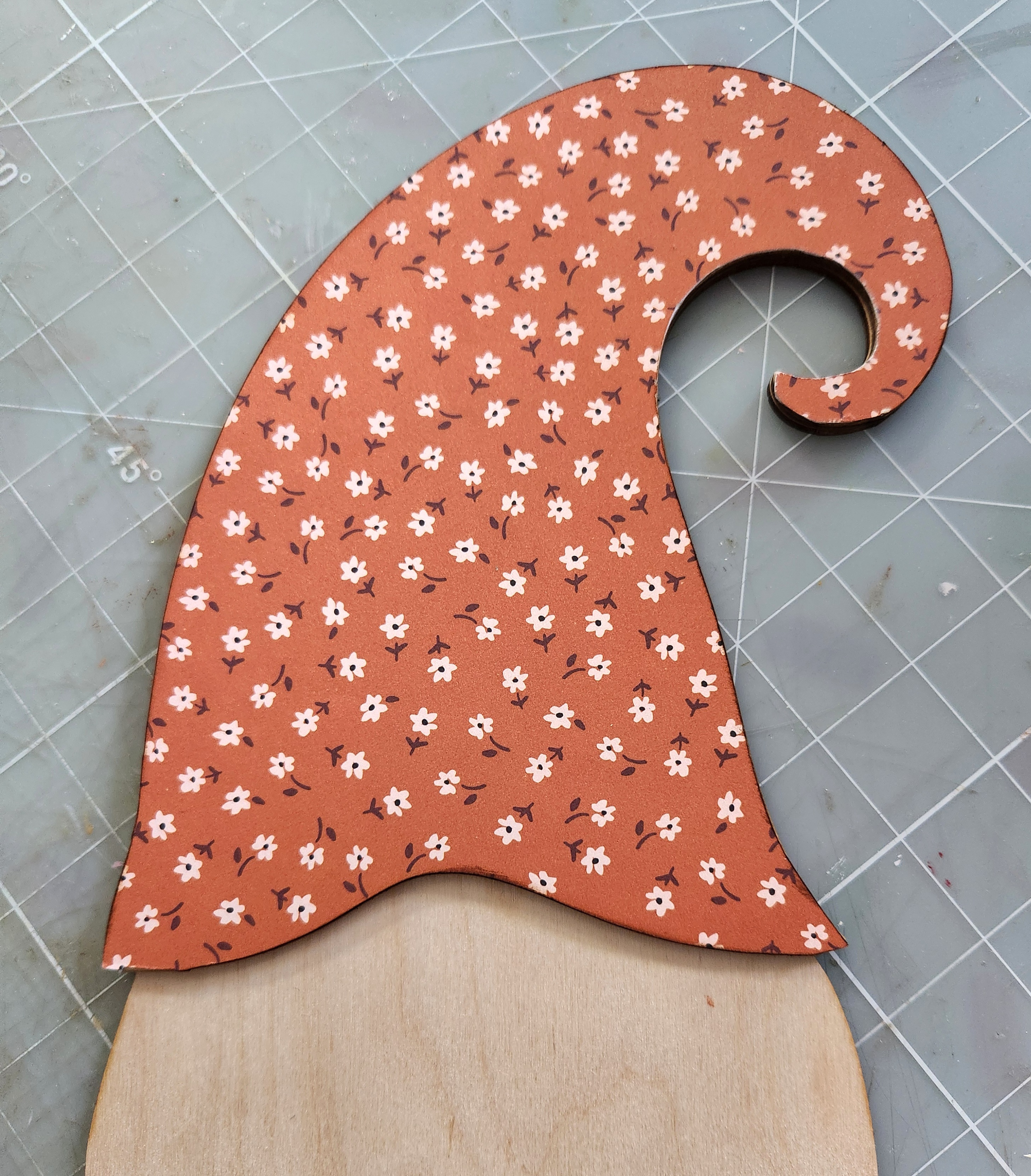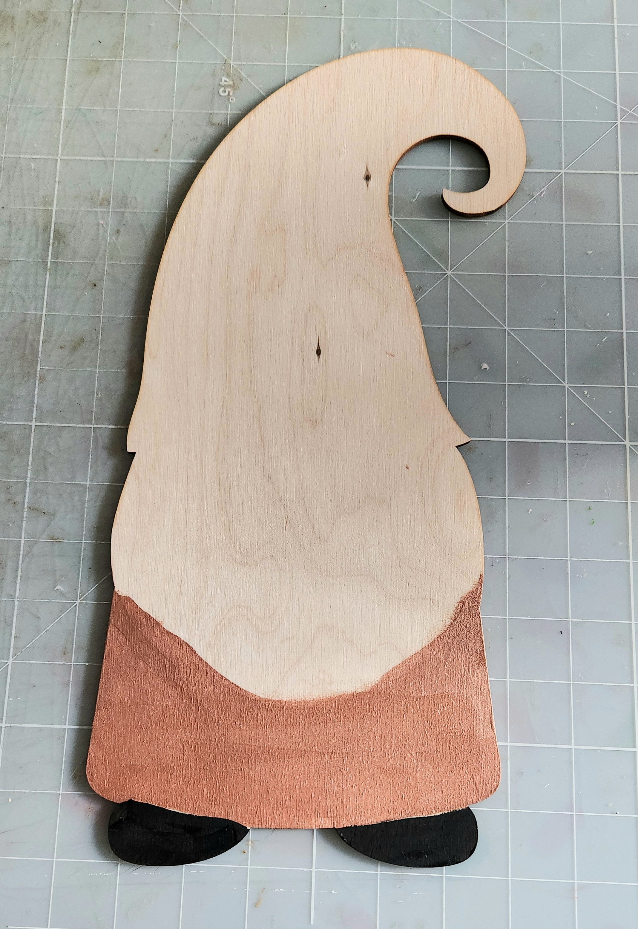 Glue the Gnome's hat and beard in place on your wood base and set aside for now.