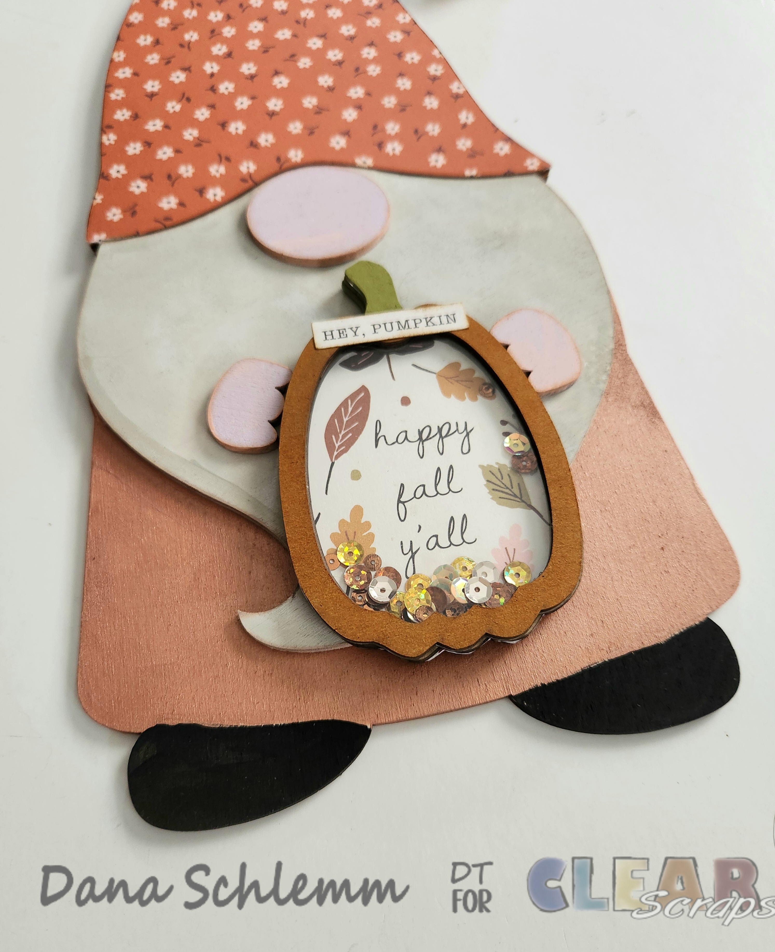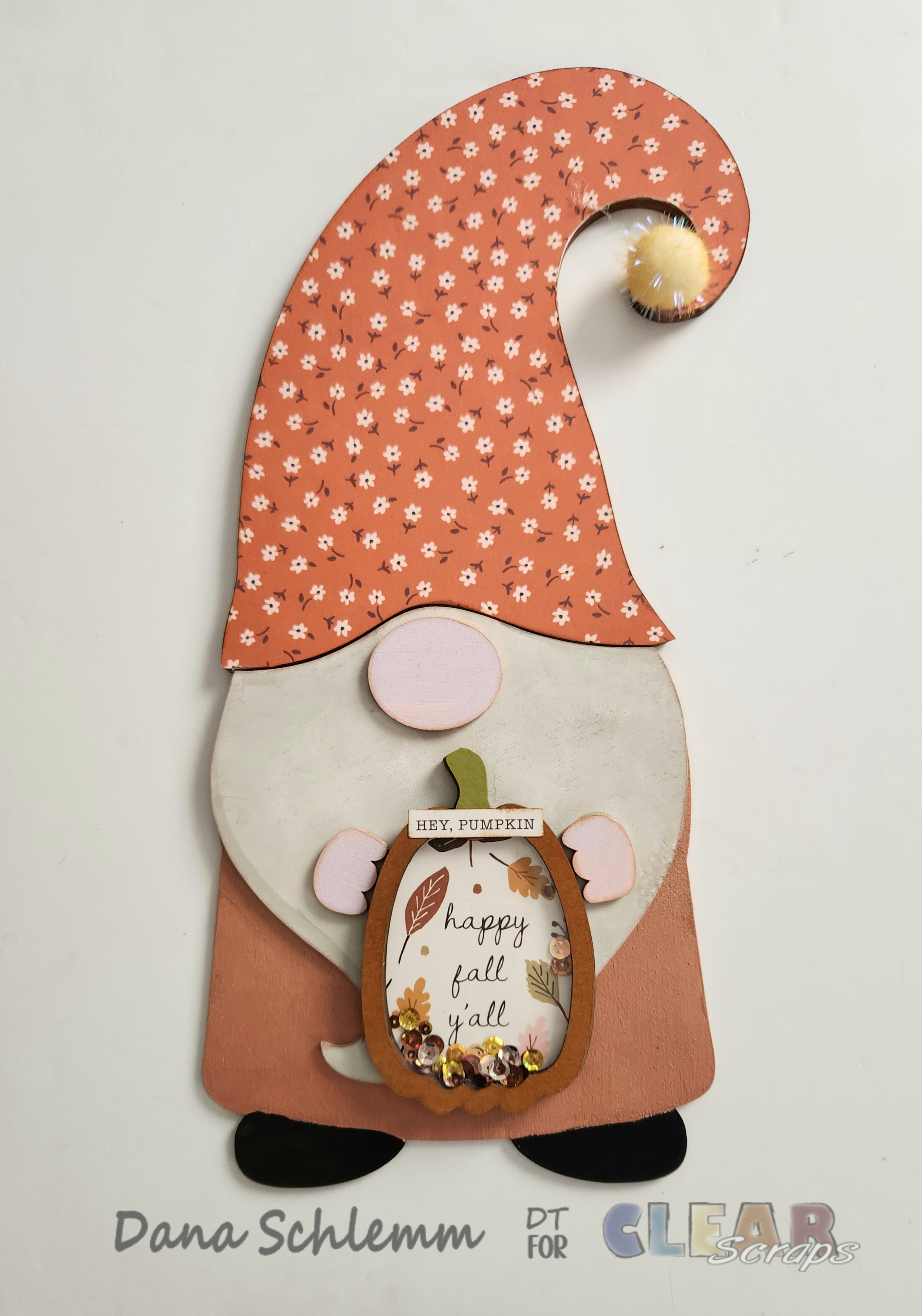 Dana here! September is here already and it's time to start decorating our Autumn projects. Today I have a Home Decor project using Clear Scraps Medium Wood Gnome Click here and Mini Shaker Pumpkin Click here