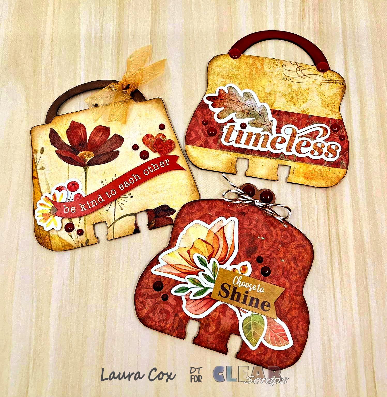 These were created using the Clear Scraps Purses Chip Divider set. The Memory-Dex cards come in chip or acrylic. The purses are a fun shape to use!