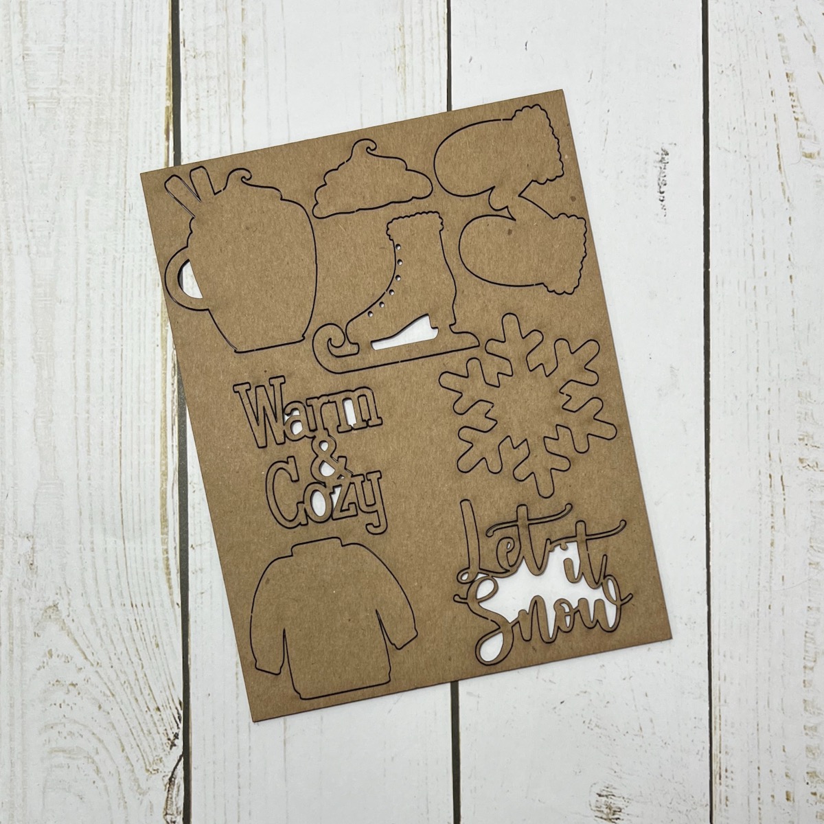 Add the “Let it Snow” chipboard piece to the center of the card and the snowflake to the left side.