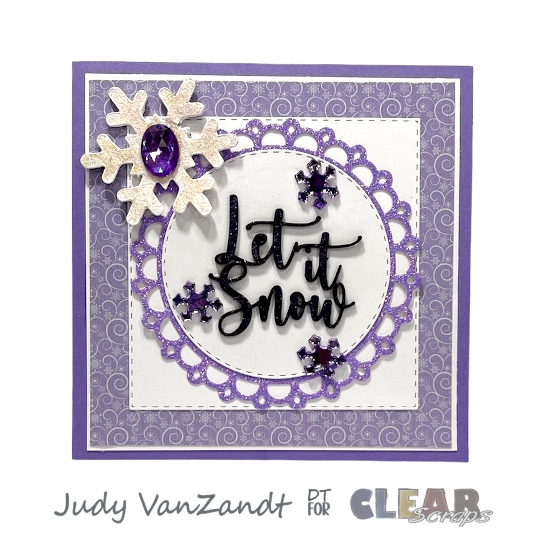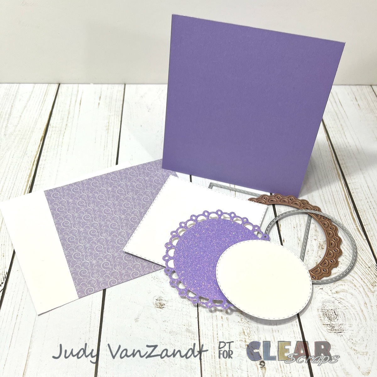 Hi there! It’s Judy here with a new project created for Clear Scraps! It is an elegant card created with chipboard shapes.