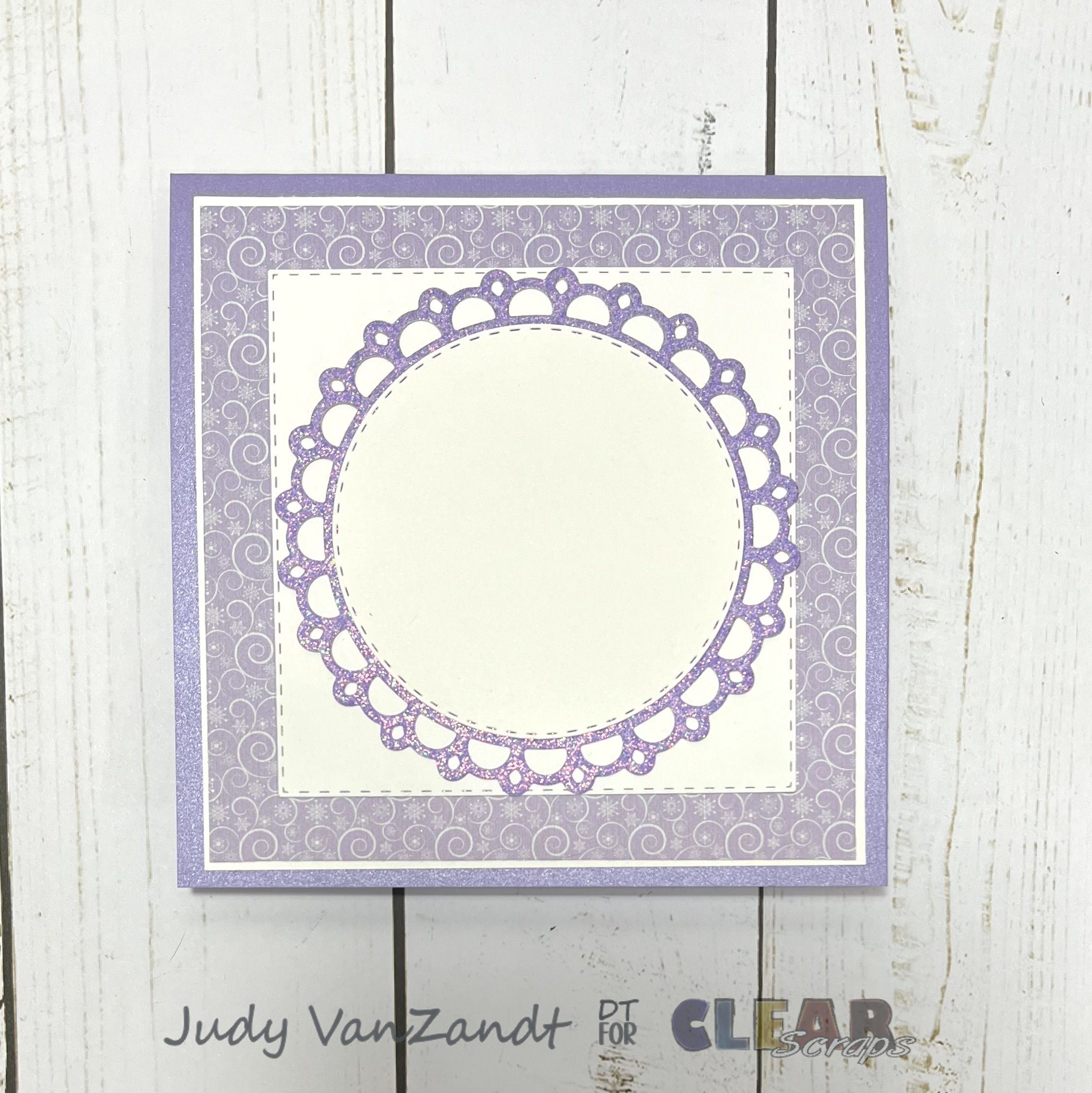Lavender colored metallic card stock was used to make a 5 1/2 x 5 1/2 inch card base.