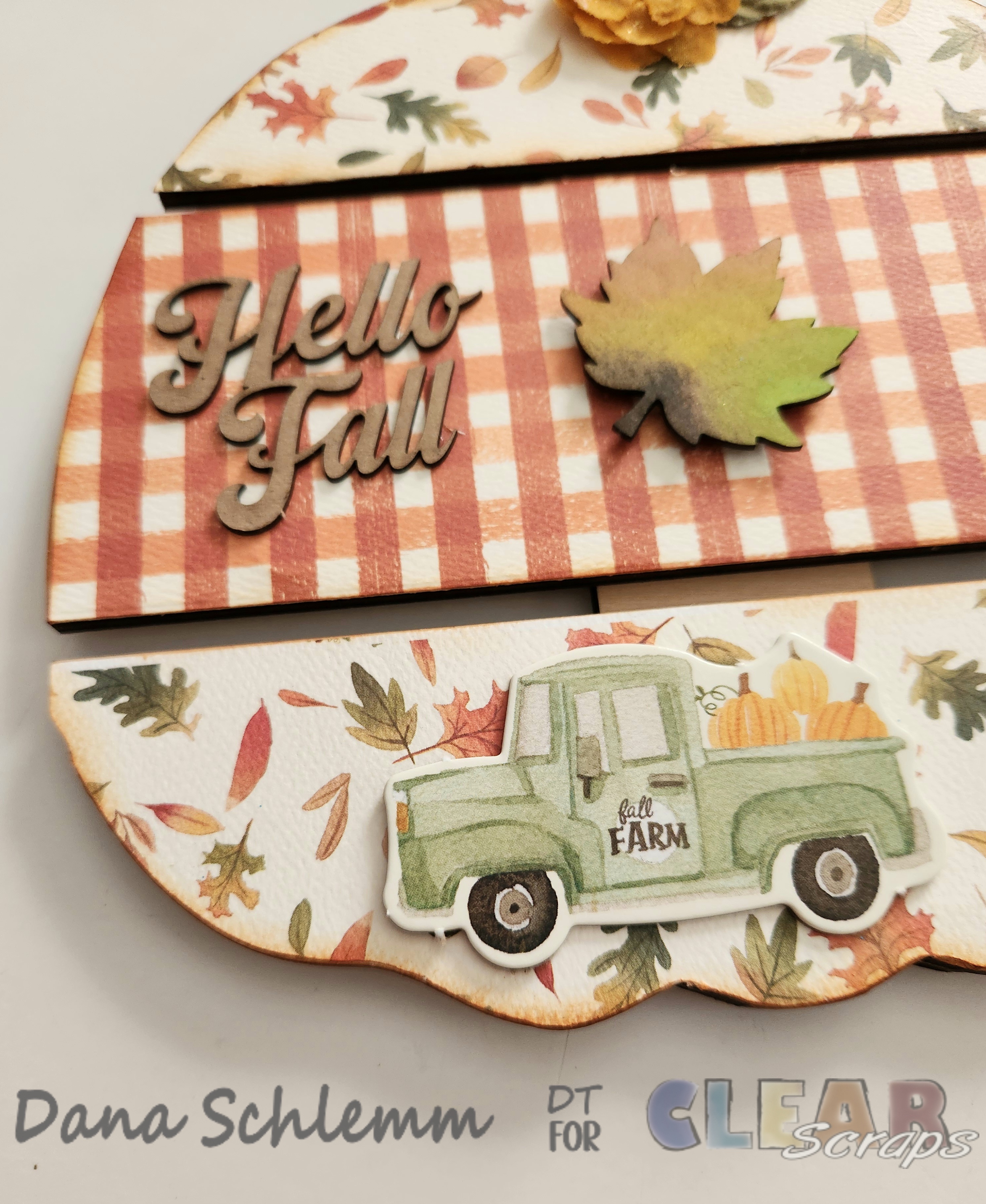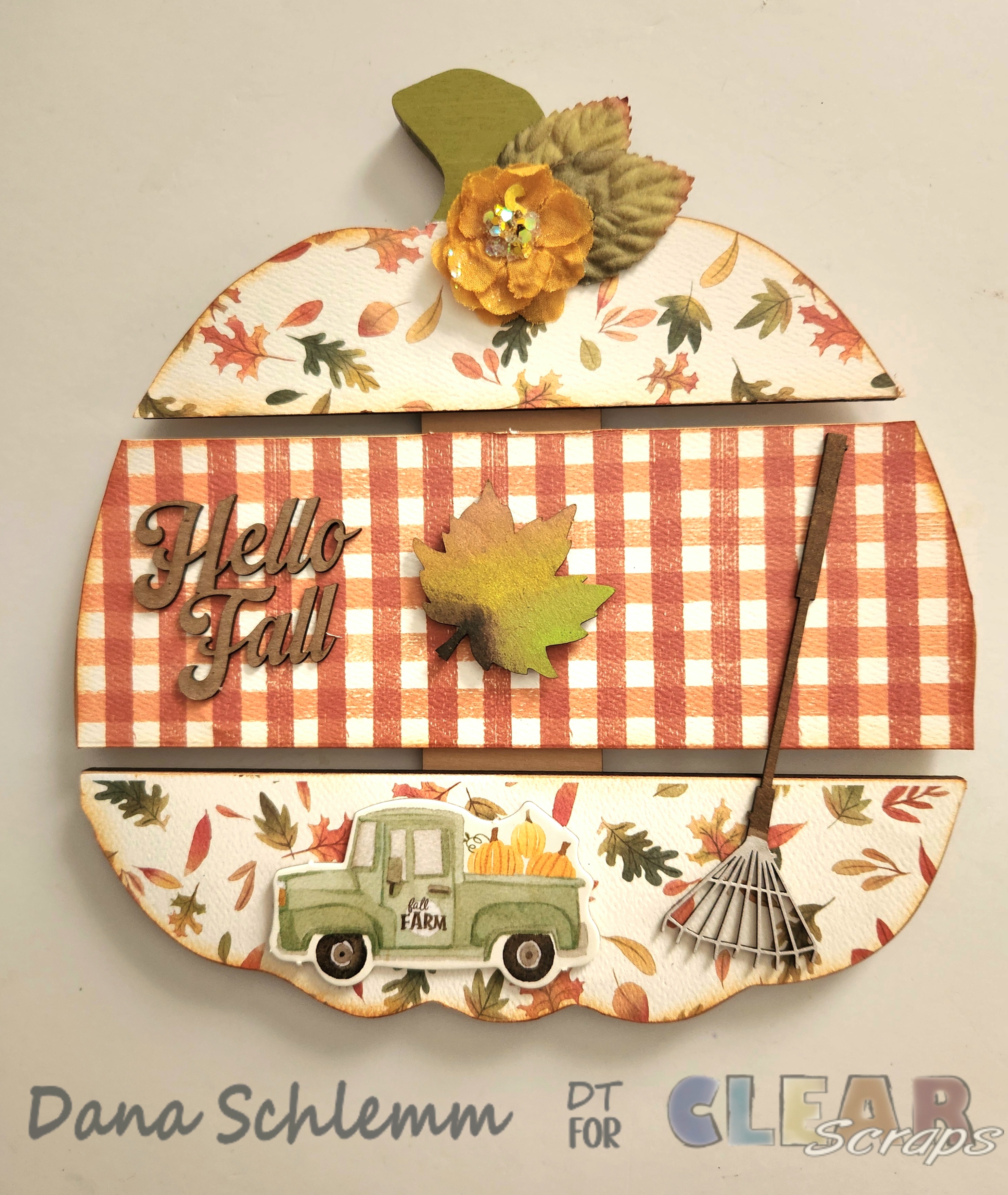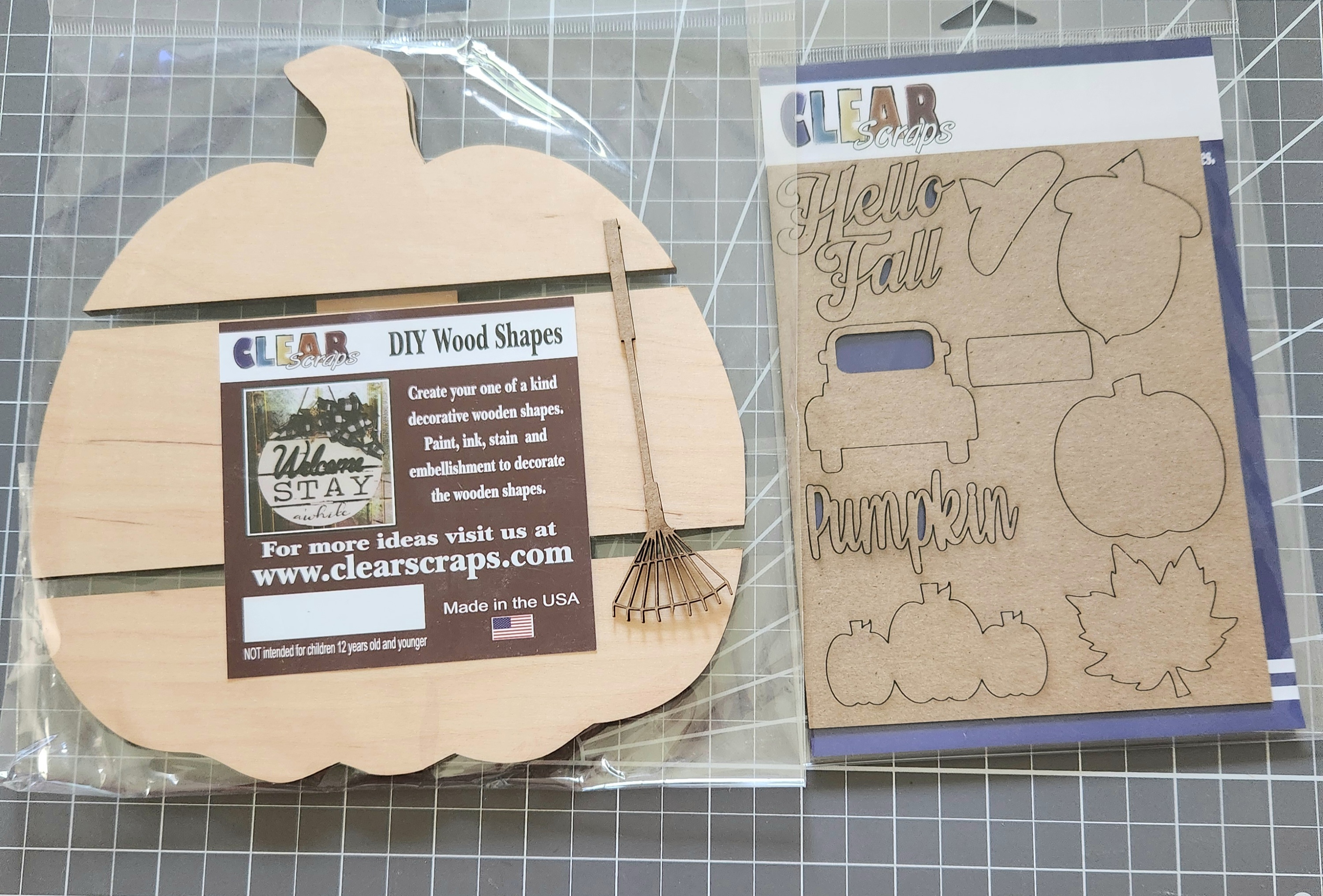 I love to decorate my home to celebrate the fall season, don't you? Today's project we'll be using Clear Scraps Pumpkin Medium DIY Pallet Shape Click here and some of the new Clear Scraps Embellishments Chipboard Punchouts Click here And also one of the Clear Scraps Garden Tools Embellishments.