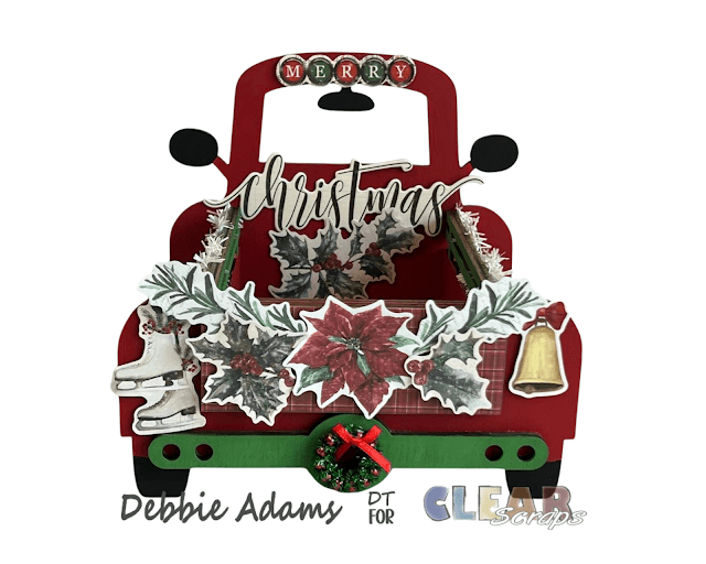 Today I am sharing the new Truck mem-dex box from Clear Scraps along with the rounded tab chip dividers 3 pack that I decorated in a Christmas theme. I had a really hard time deciding what theme I wanted as this would look good for any occasion. Below I have photos and links to the items I used and I have the step by step tutorial below for you as well.