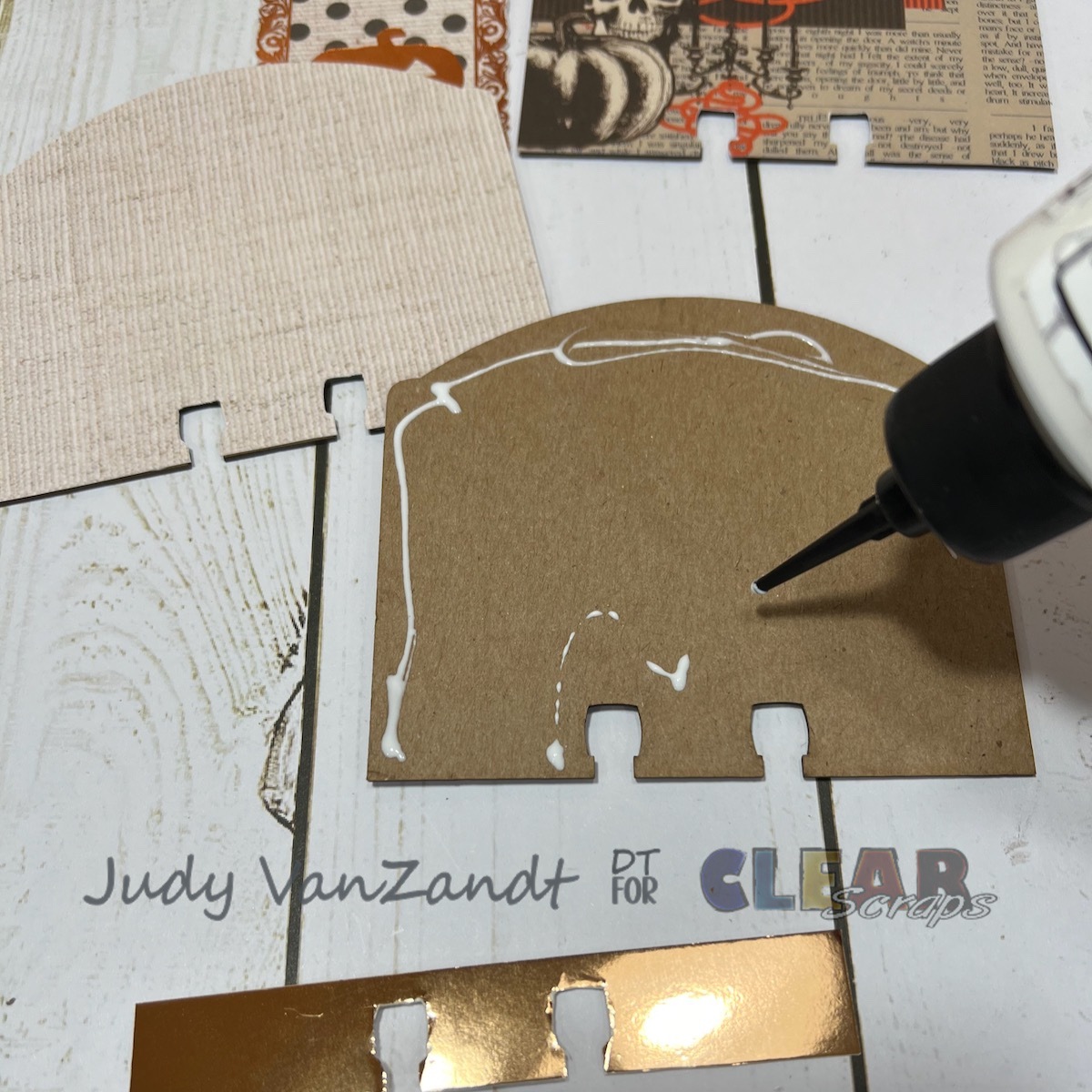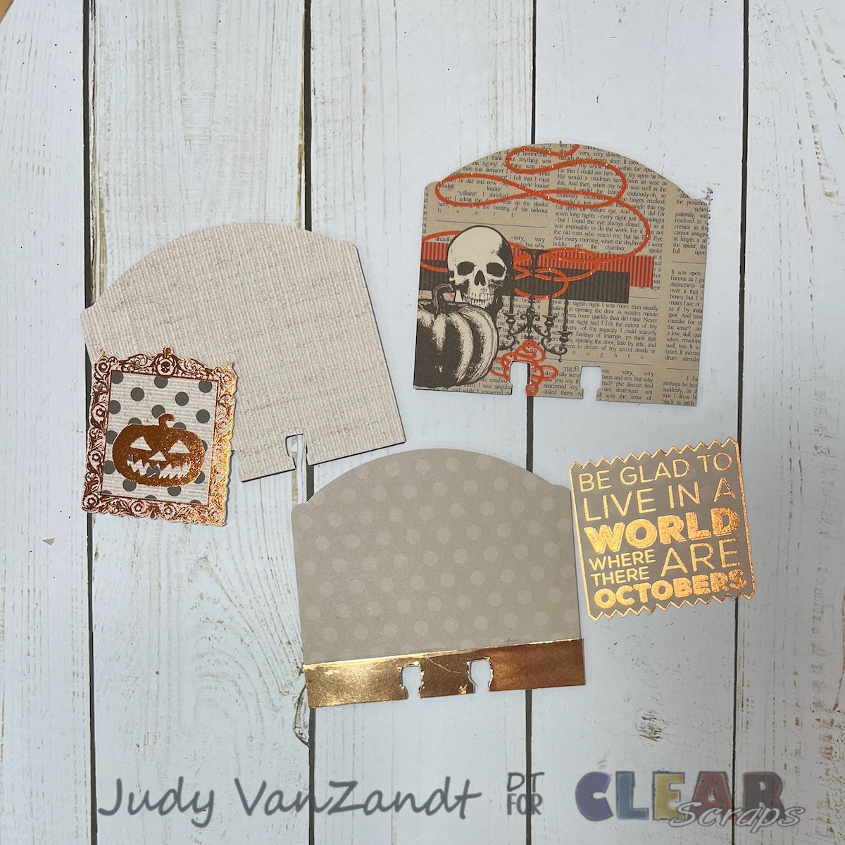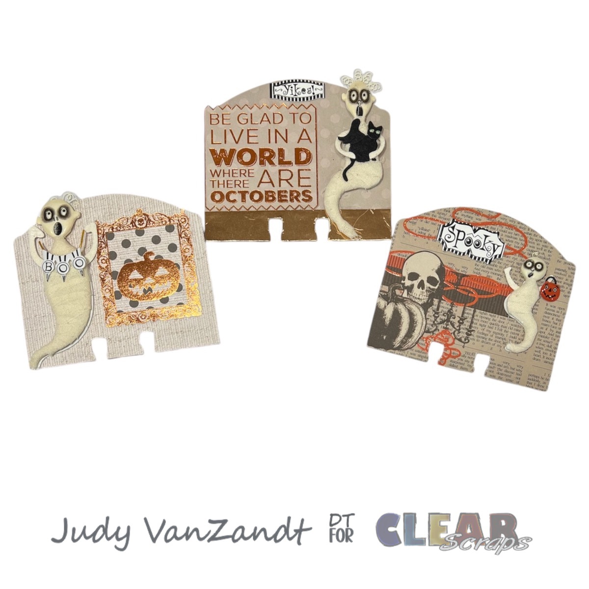 Hi there! Judy here with a pretty quick and easy, fun Halloween themed project created for Clear Scraps!