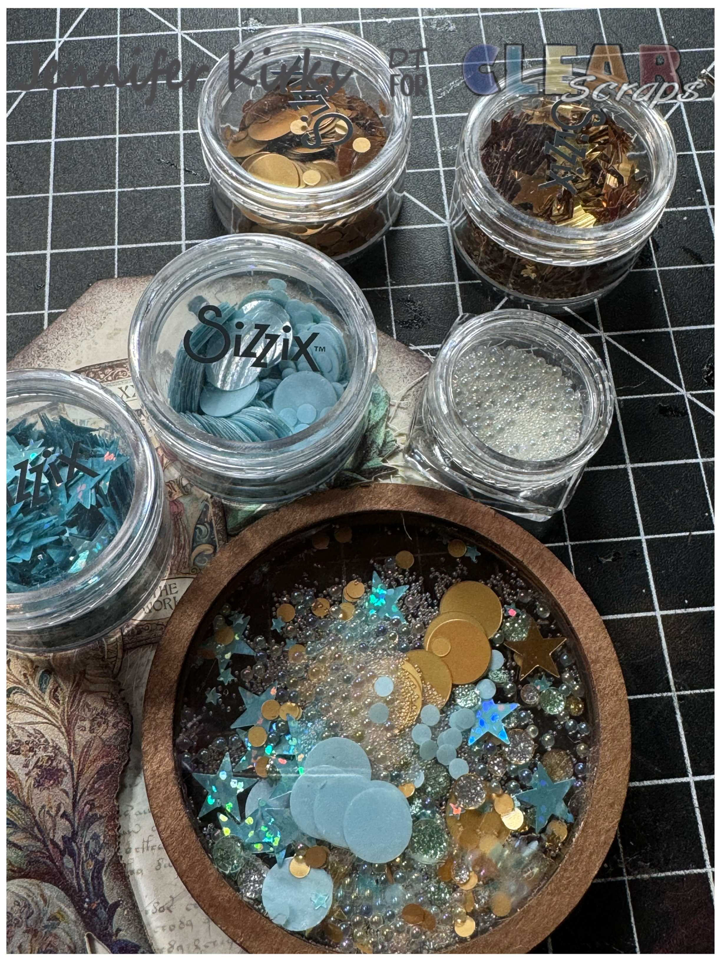 I sifted through my stash of sparkles, glitter, and beads to find the perfect shades and mix for the shaker portion of my tag!