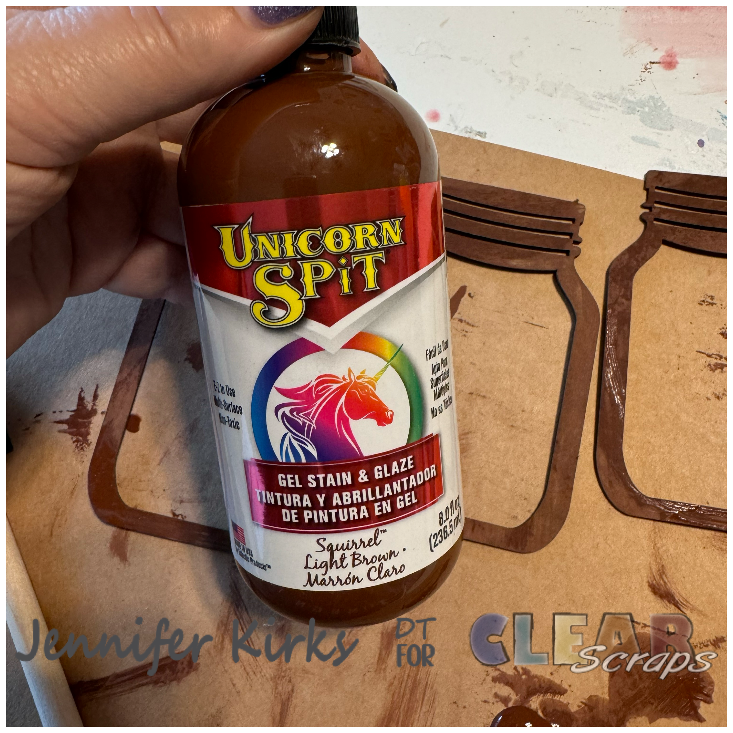 I began my crafting adventure with the shaker, painting the cutout jar pieces with a rich coat of brown unicorn spit. While that dried, I picked out the perfect paper for the inside of the shaker. After tracing, gluing, cutting, and meticulously cleaning the edges with my X-Acto knife, I stacked two of the cutouts and secured them to the base of the shaker.
