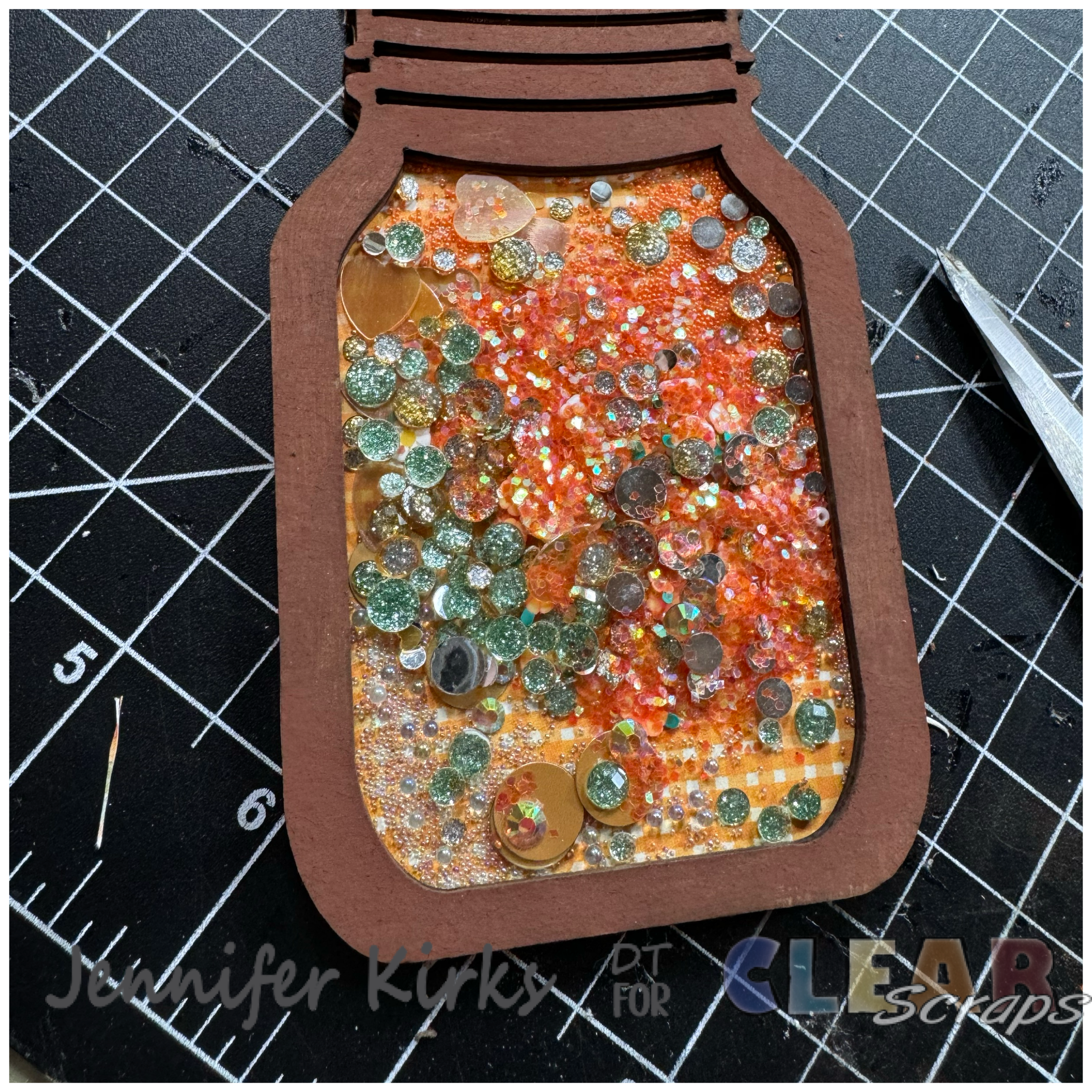 Then came the fun part! I gathered an assortment of beads, glitter, and sequins, ready to create a delightful surprise within. I peeled away the protective plastic from both sides of the acrylic piece, gluing it atop the outlined cutouts. Finally, I secured the last piece to complete the shaker's enchanting look. What a joyful process!