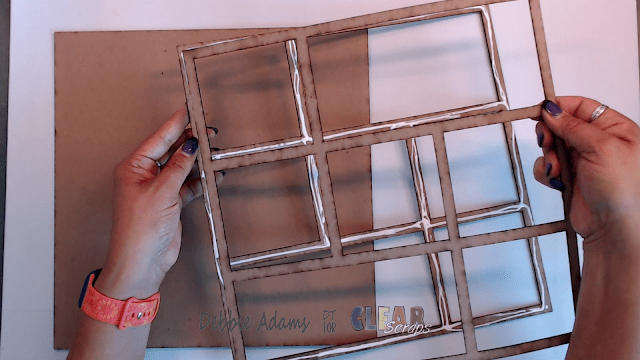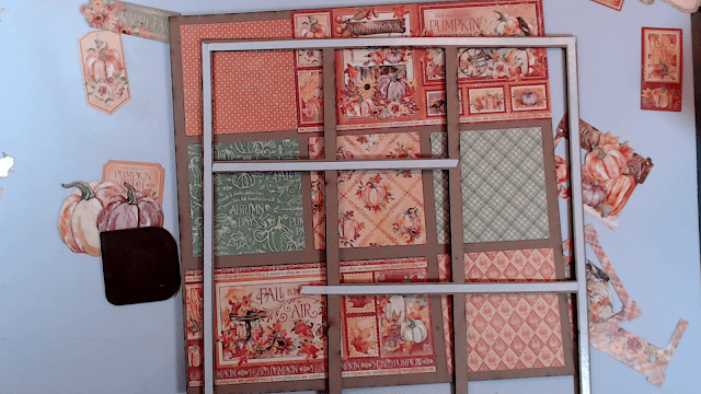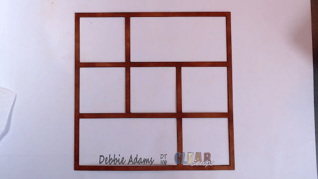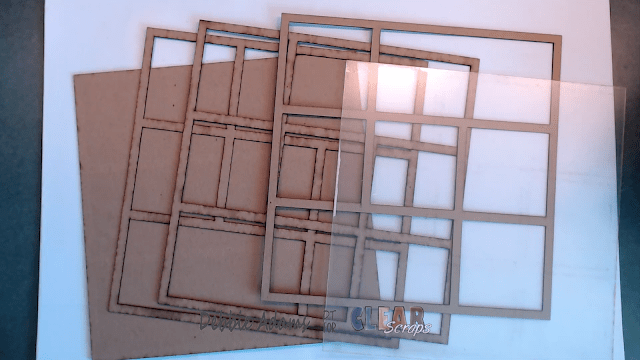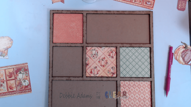 Next place the two adhered frames on top of the large chipboard and measure the squares and rectangles cut out your pattern papers.