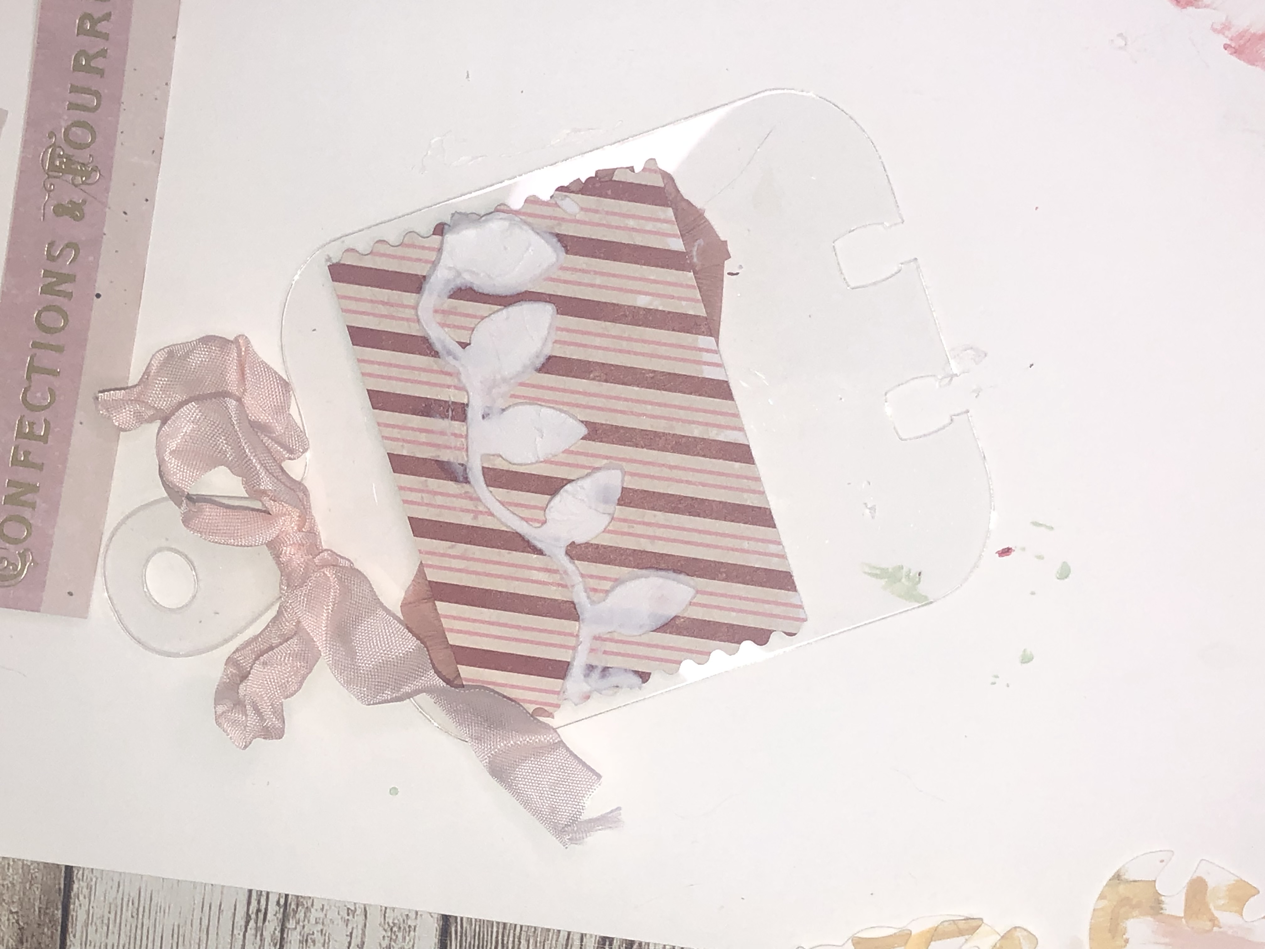I used Wet Glue and 3D Gel medium to apply the embellishments. Hot glue can damage the acrylic so I stay clear of it unless I know I will be safe using it.
