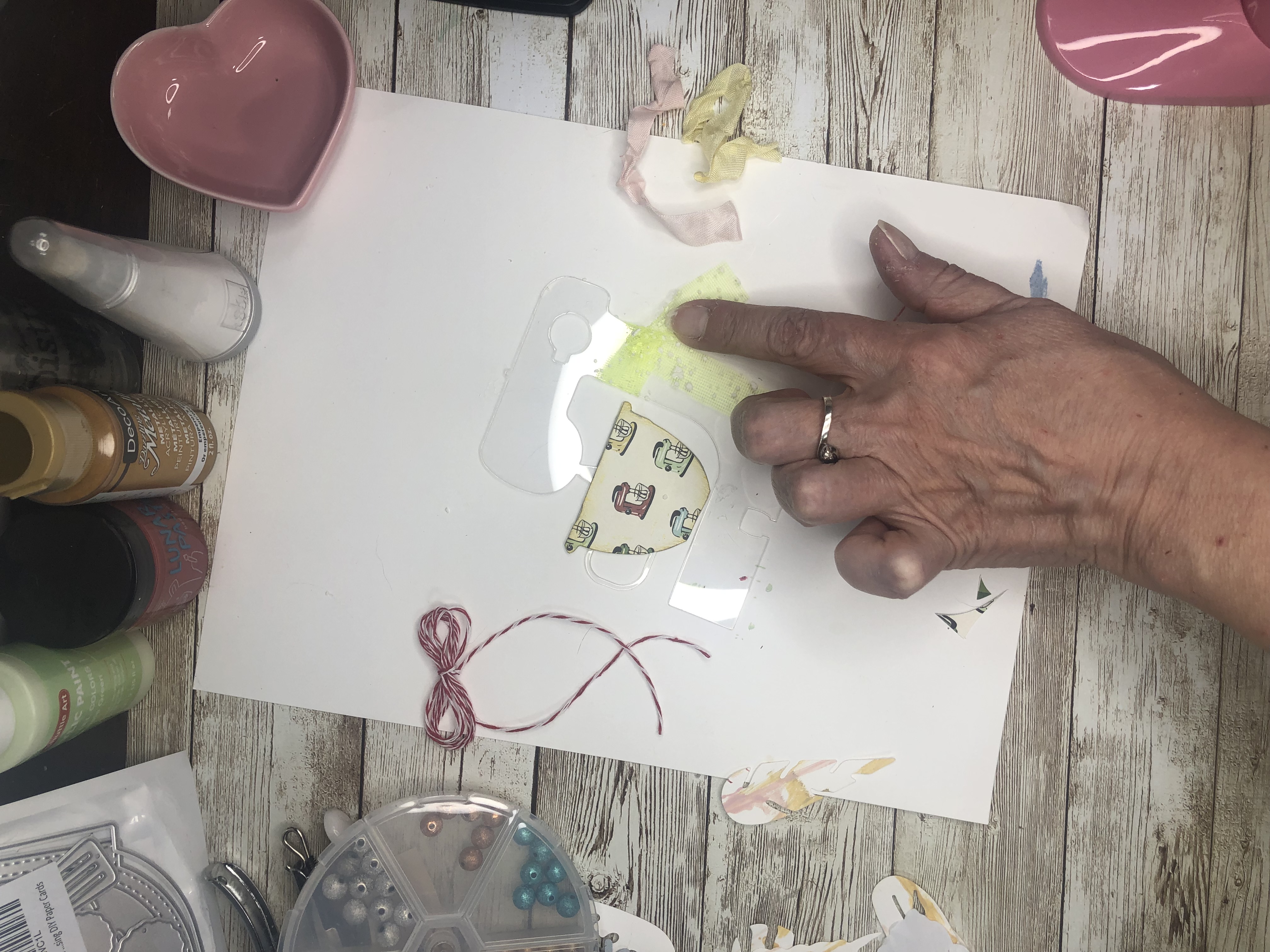 I decided to cut out the paper for just the bowl of the mixer and used some stickers and seam binding.