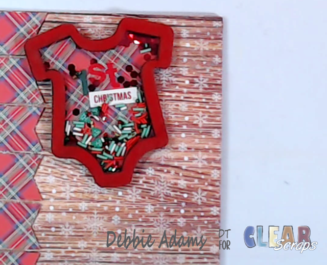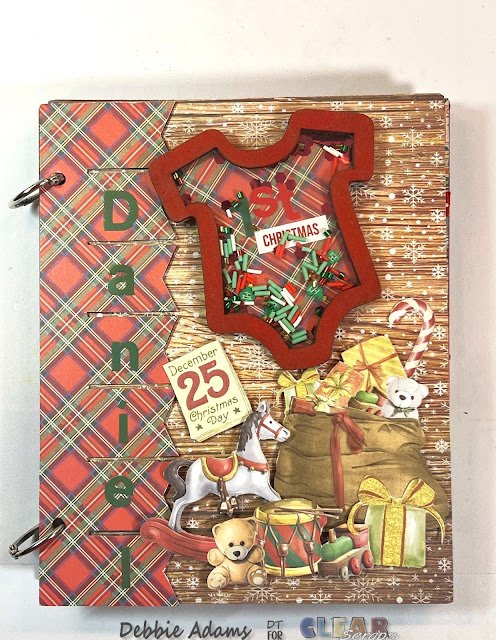 I hope you all are having a great day. The holiday season is upon us and I can't believe how fast Christmas will soon be here, really just like 5 weeks away. Today's project is a Christmas Album, however I created it for my daughter to my grandson's Christmas pictures inside as it is his first Christmas. This album is really simple and easy not a lot of flips and flaps but definitely will hold lots of photos. For this album I used the Chipboard Banner Album and the Mini Shaker Onsie from Clear Scraps. I have a step by step below and I have a video tutorial with more details.