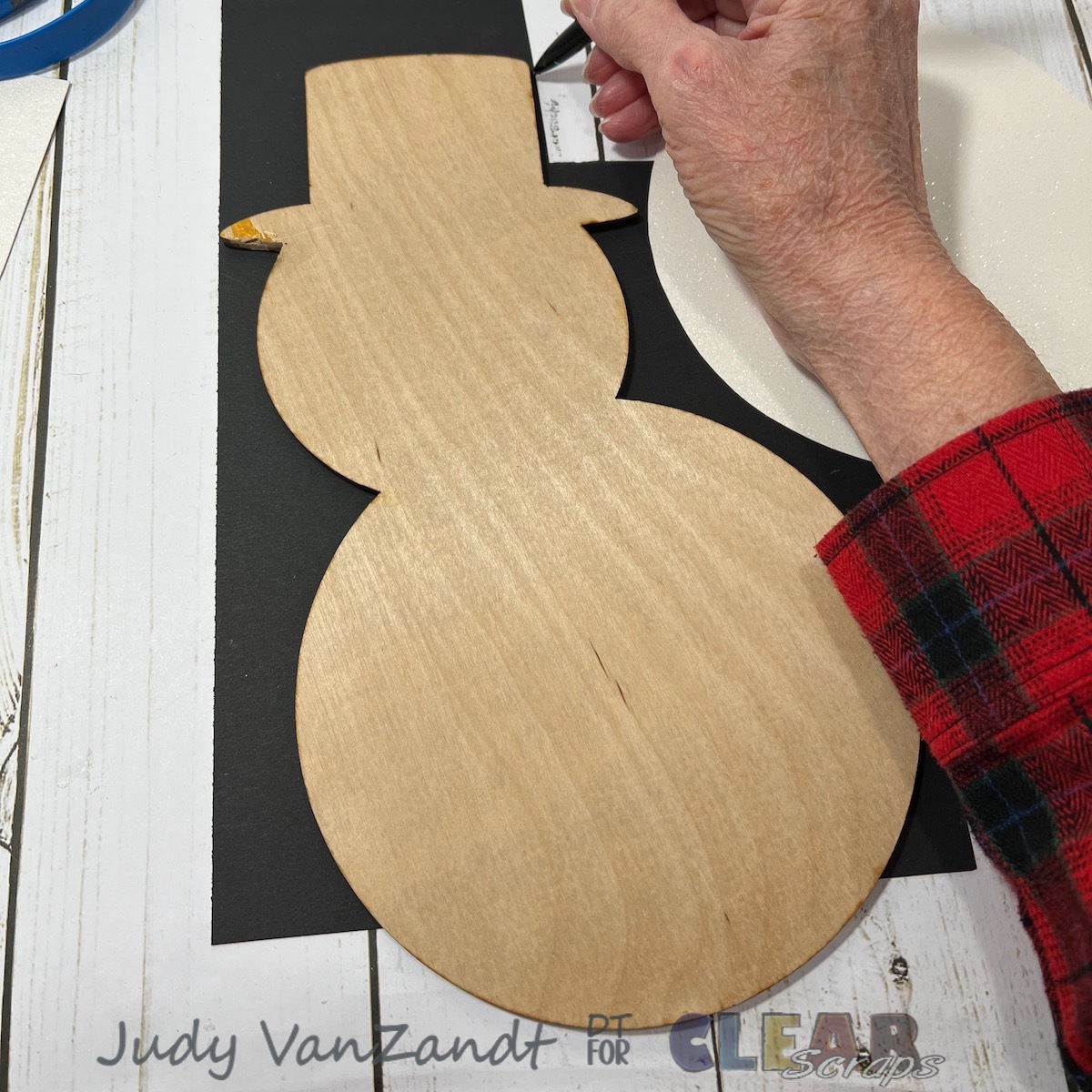 I adhered the cut outs to the front of the snowman shiplap shape.