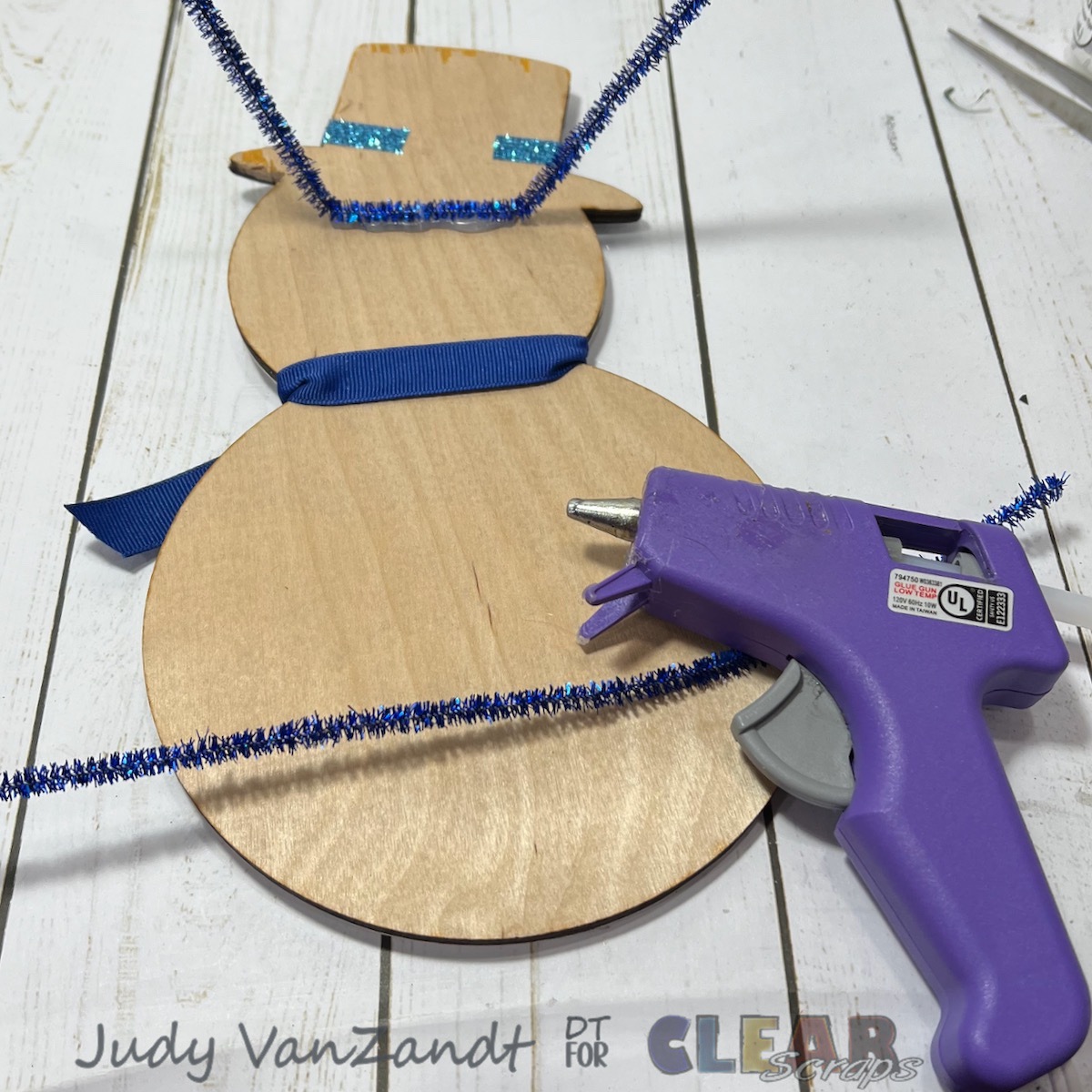 Since I plan on attaching my snowman to a wreath, I hot glued 2 pipe cleaners to the back.