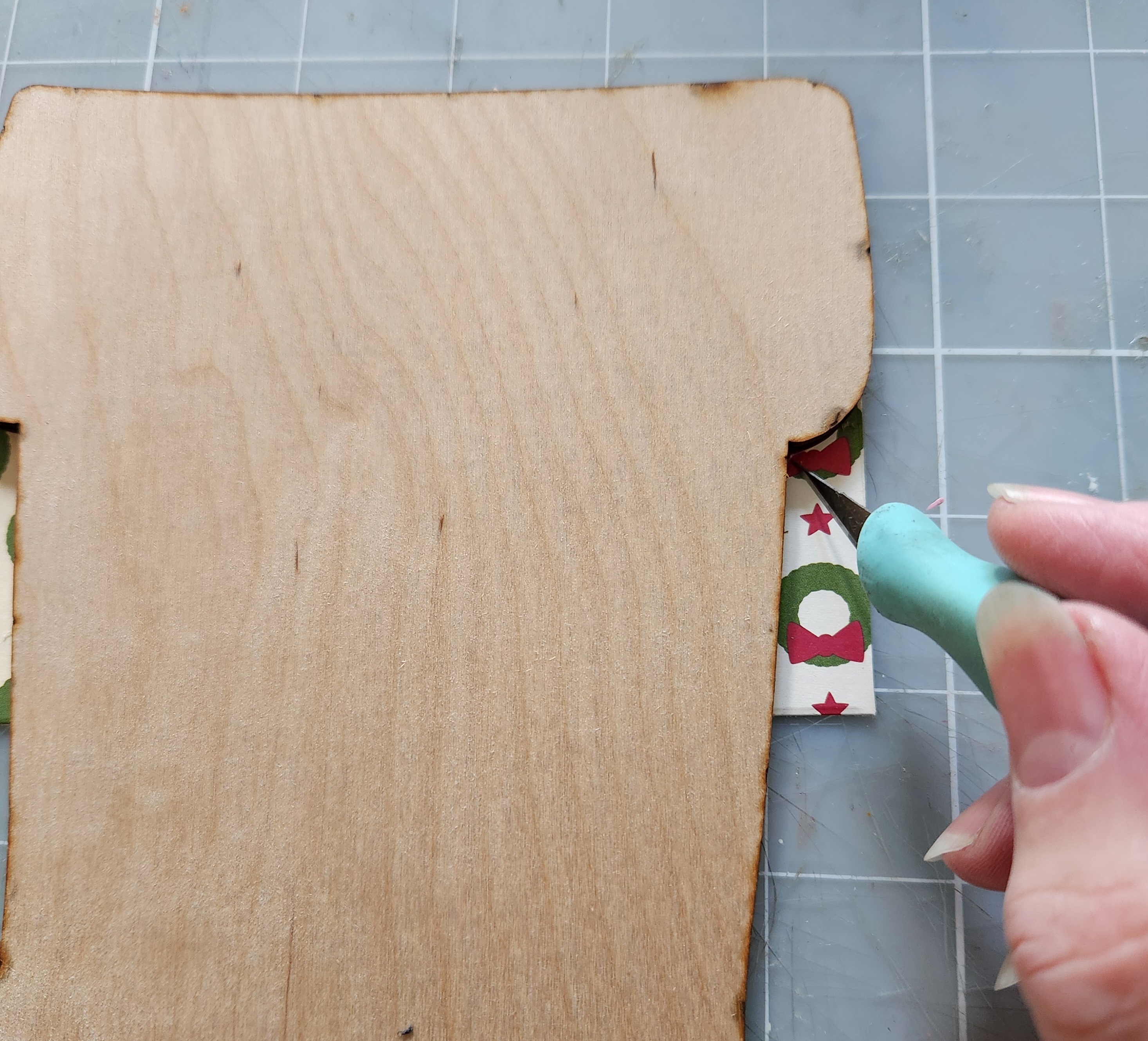 To decorate my Shiplap Stocking shape, I'm using scrap papers from my stash. You could also paint, ink or stencil onto your wood surface.