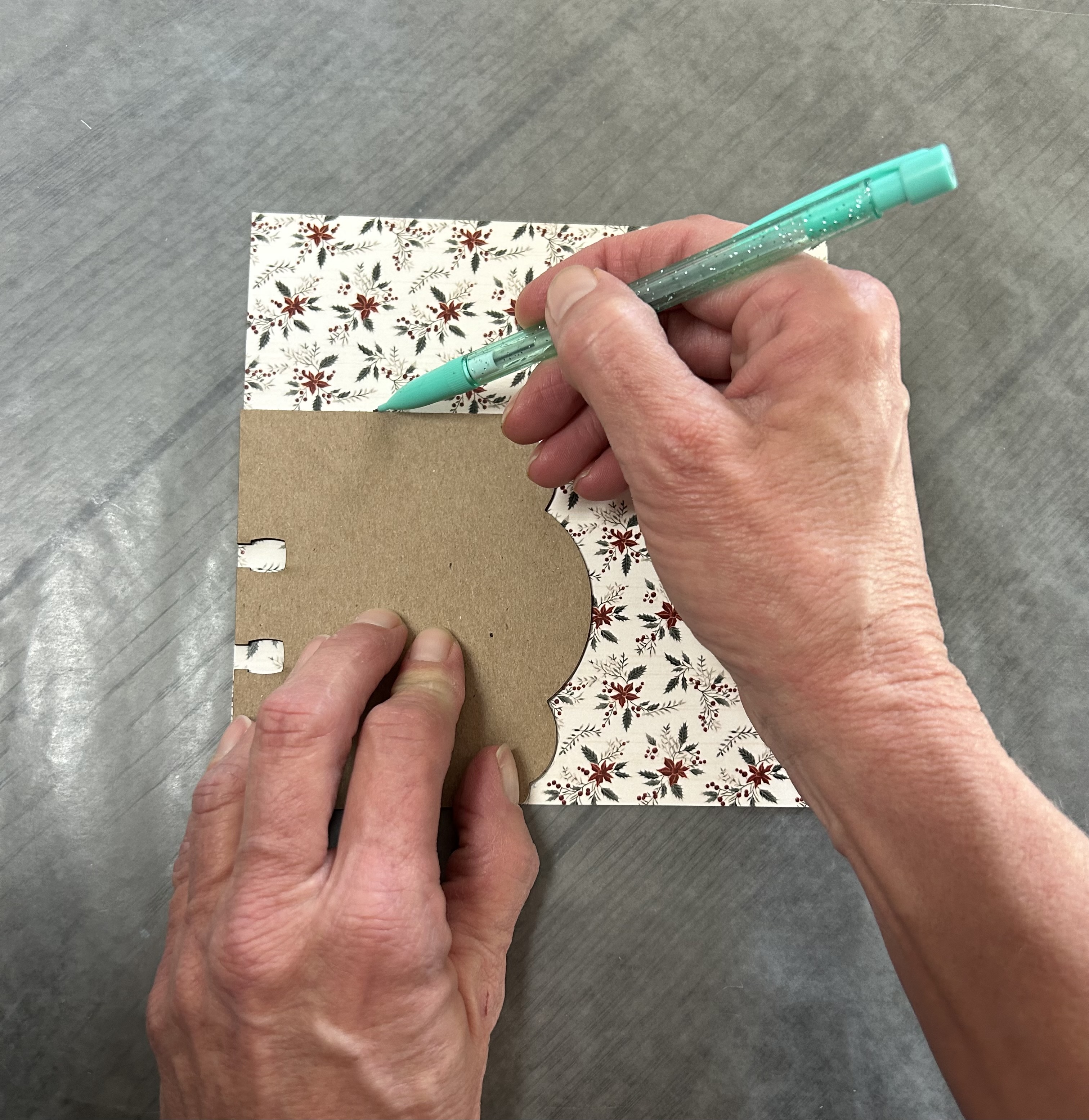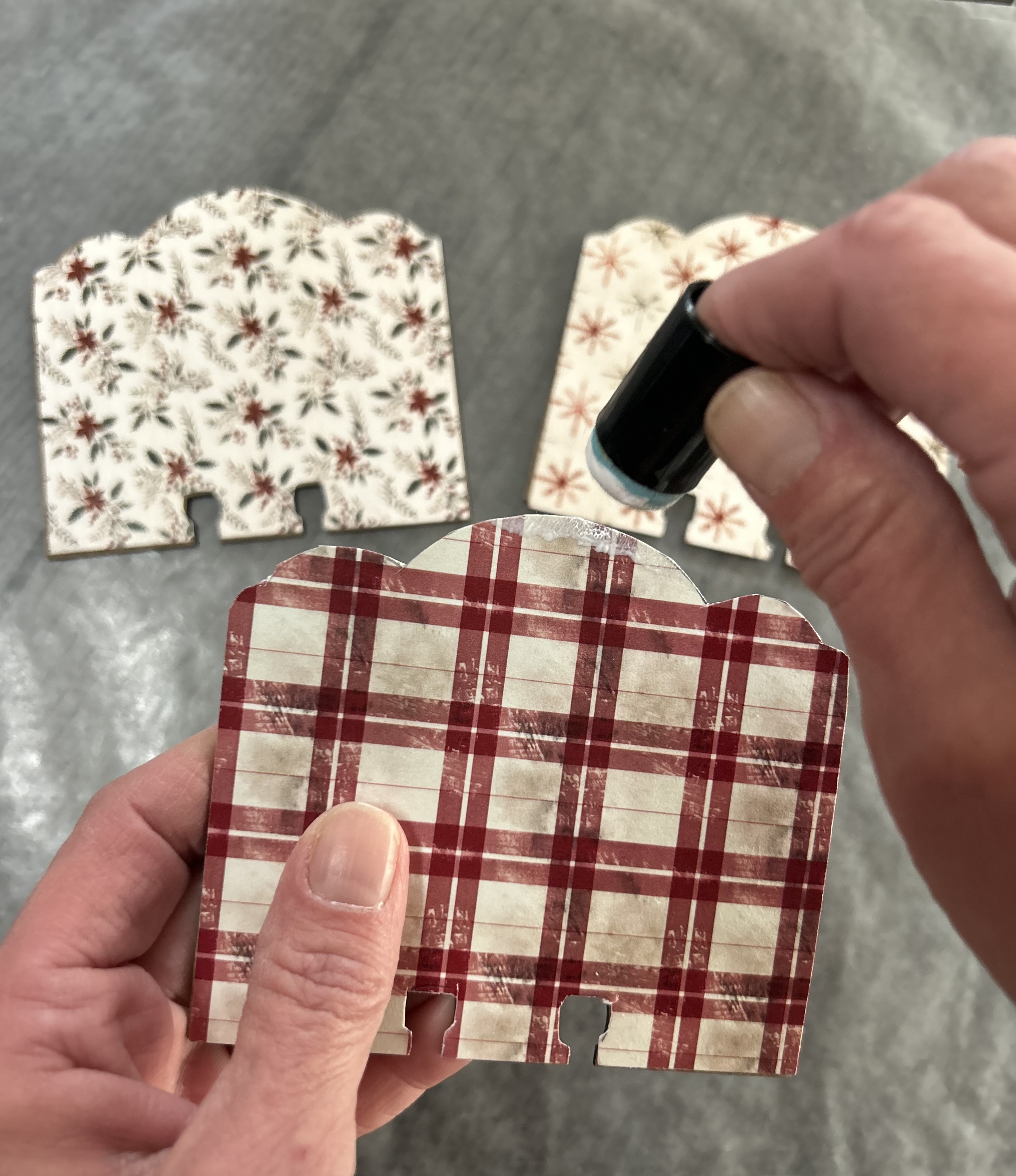 I chose the papers I wanted to use then I used a pencil to trace the outline of the card on th pattern paper