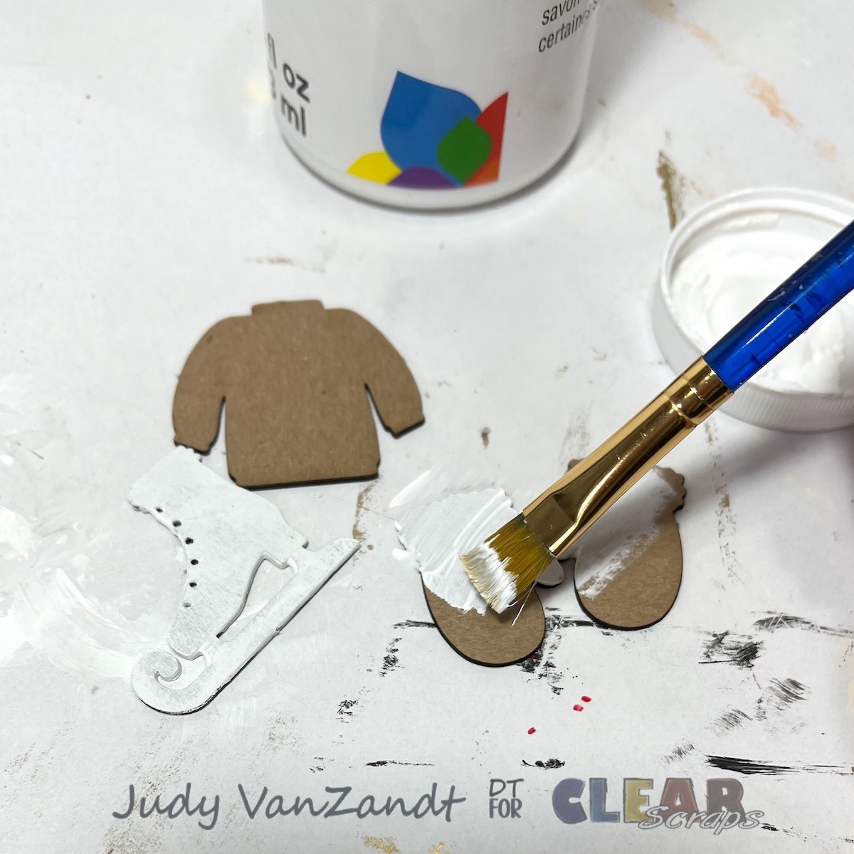 The chipboard pieces were painted with white acrylic paint as a base coat.