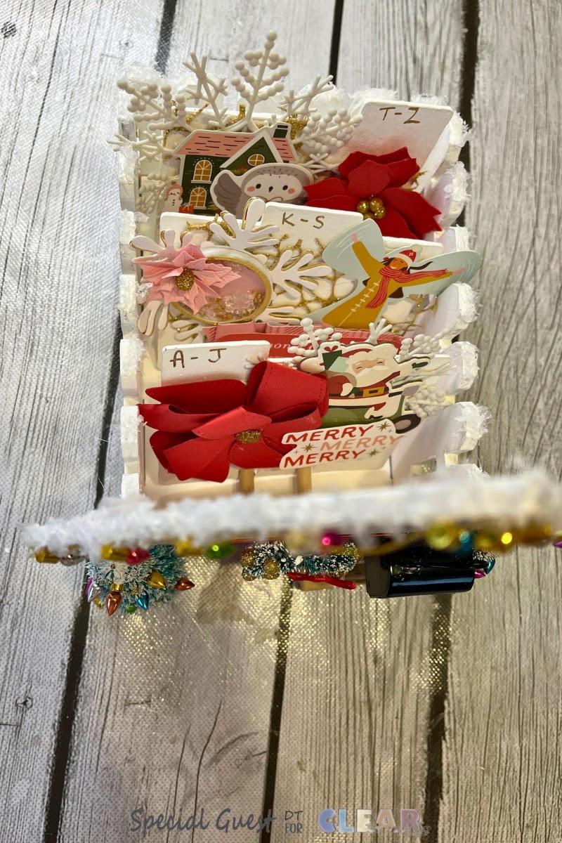 If you saw my project from last month, then you saw that I built clear scrap's beautiful house MDC holder and decorated it in a winter/Christmas theme! Well this month, I used the chipboard Regular Tab Index Memory Dex Cards and decorated them all with snowflakes in mind! I wanted to create these MDC's into divider tabs for my collection on MDC's that I have received from other crafters. So after decorating them, I labeled the first "A-J", the second "K-S" and the third "T-Z" just to keep my MDC's in alphabetical order- hoping this would make it easier to find them easier!