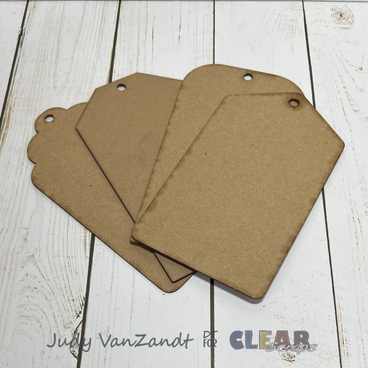 I am sharing my process of decorating the 4 tags that are included in the Chipboard Tag Album. Each tag is a different shape and measures approximately 3.75 x 6.75 inches.