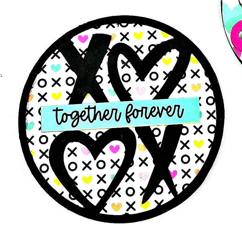 The "XO" was painted with black acrylic paint, and the lid insert piece was traced and cut out, then glued to the insert. After the painted piece was dry, it was glued on top and the sticker sentiment added.