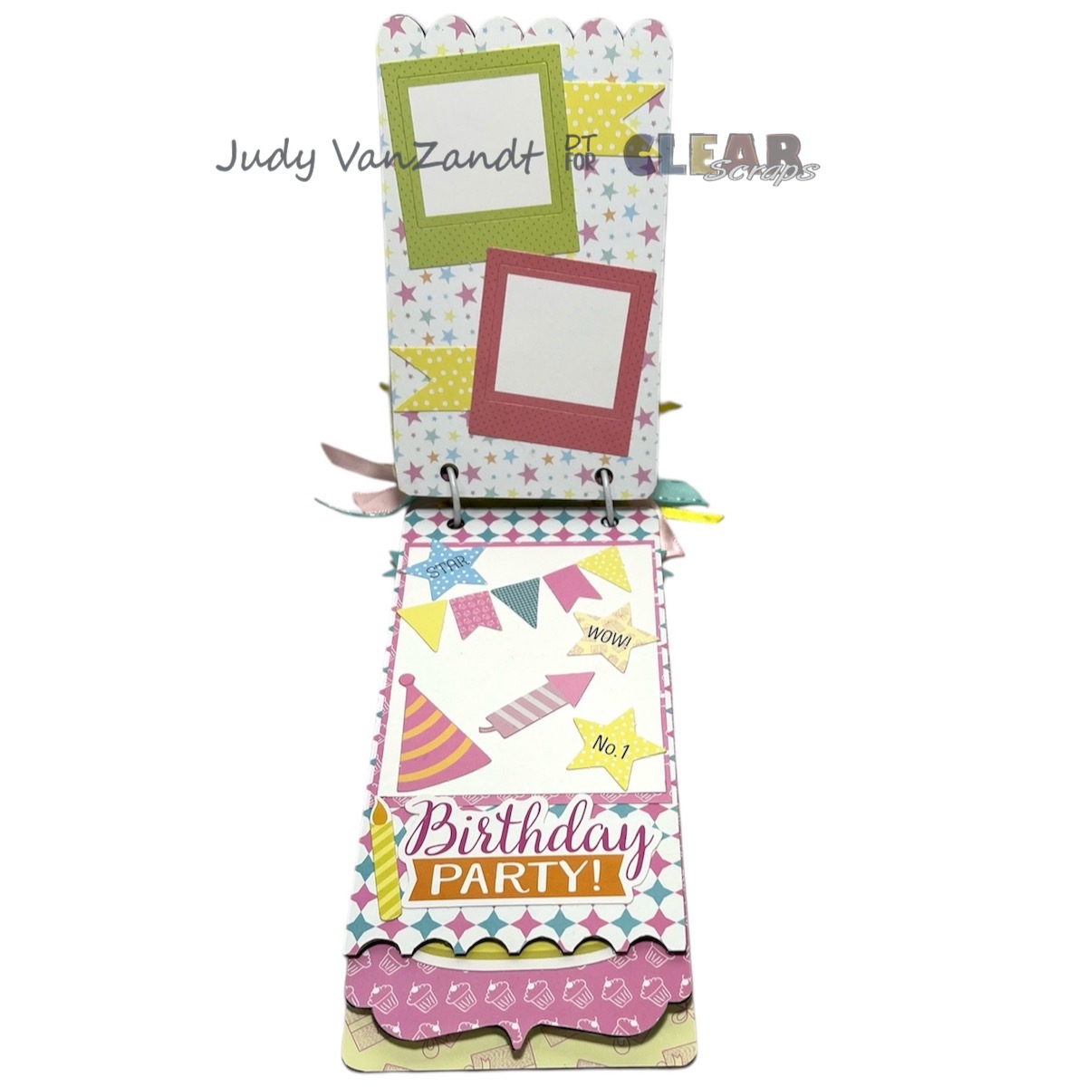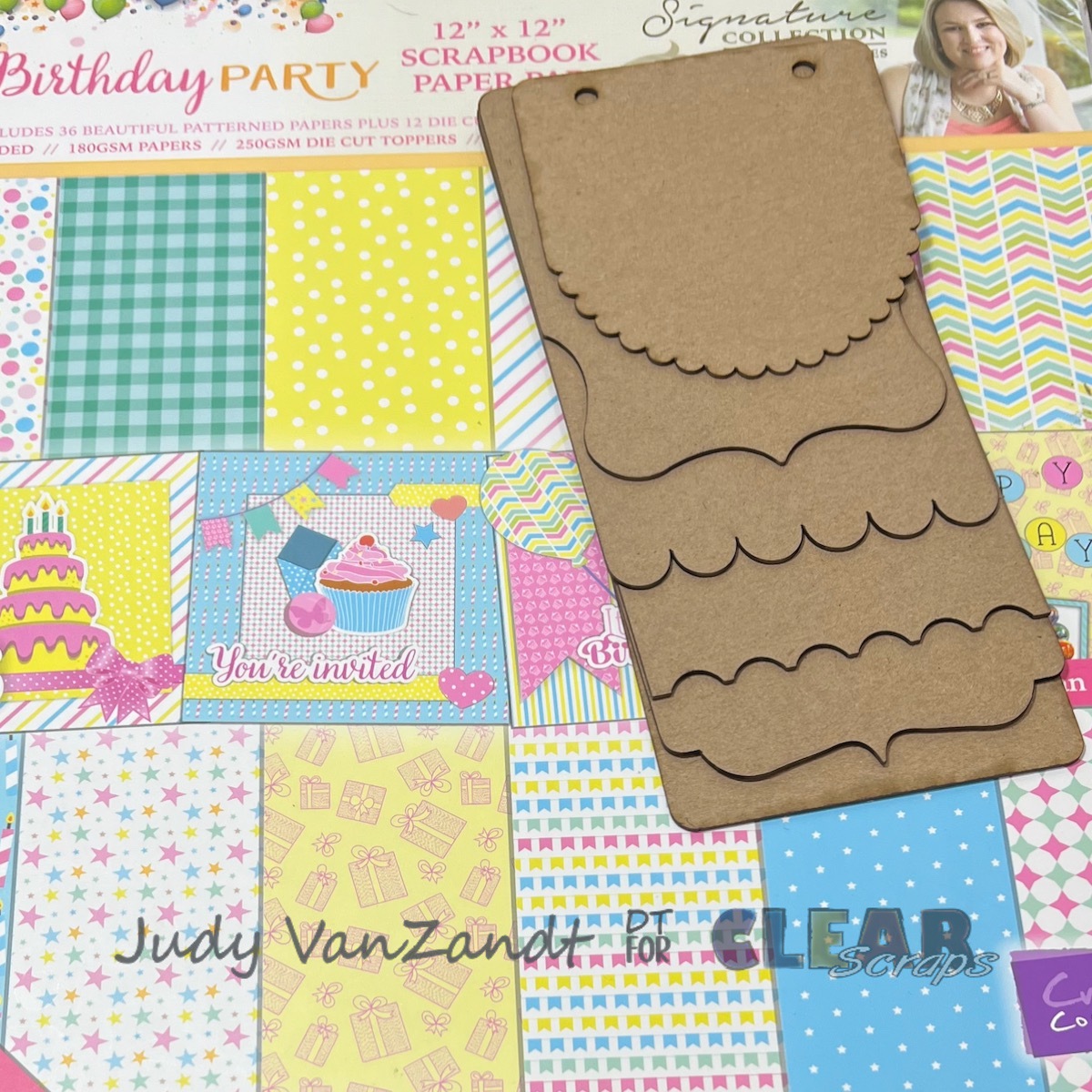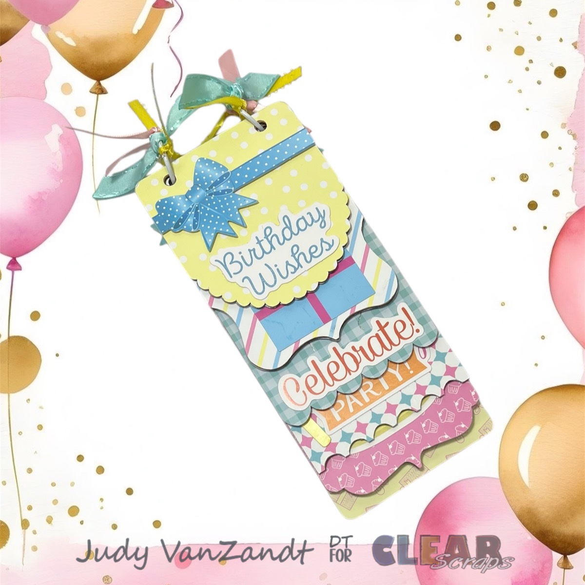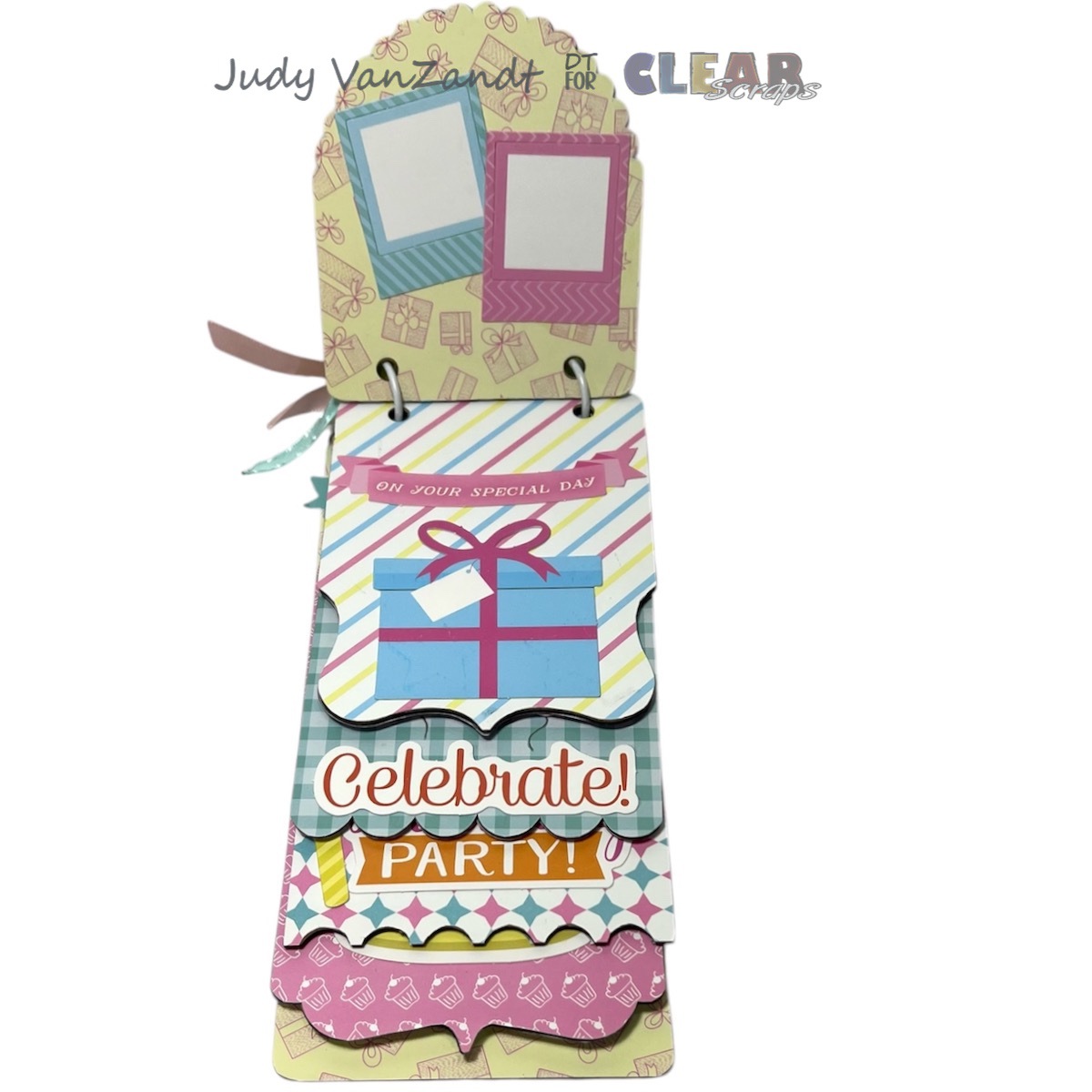 Hi there! Judy here with a fun mini birthday album project created for Clear Scraps.