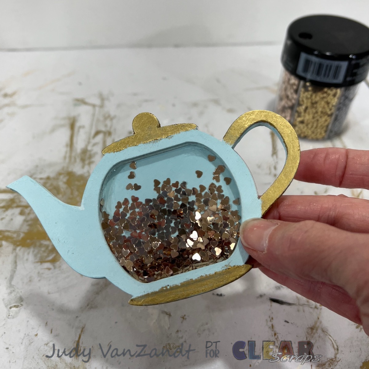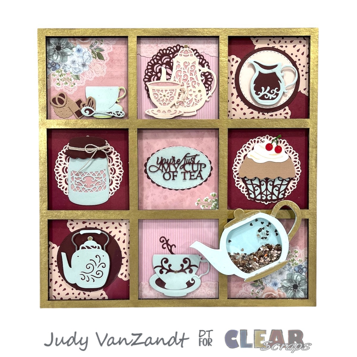 This is a tea themed printer tray using the Square Printer Tray and the new Mini Shaker Teapot.