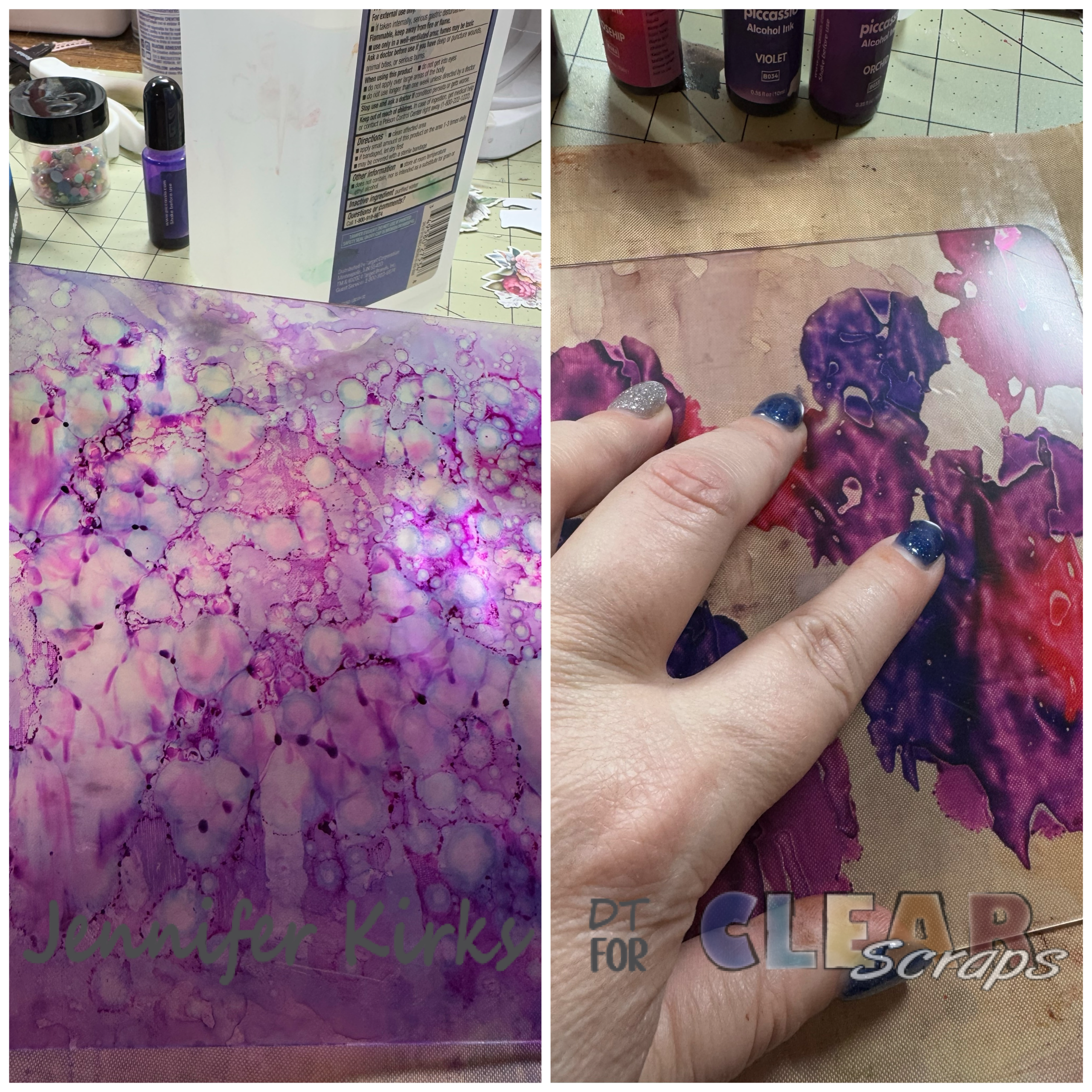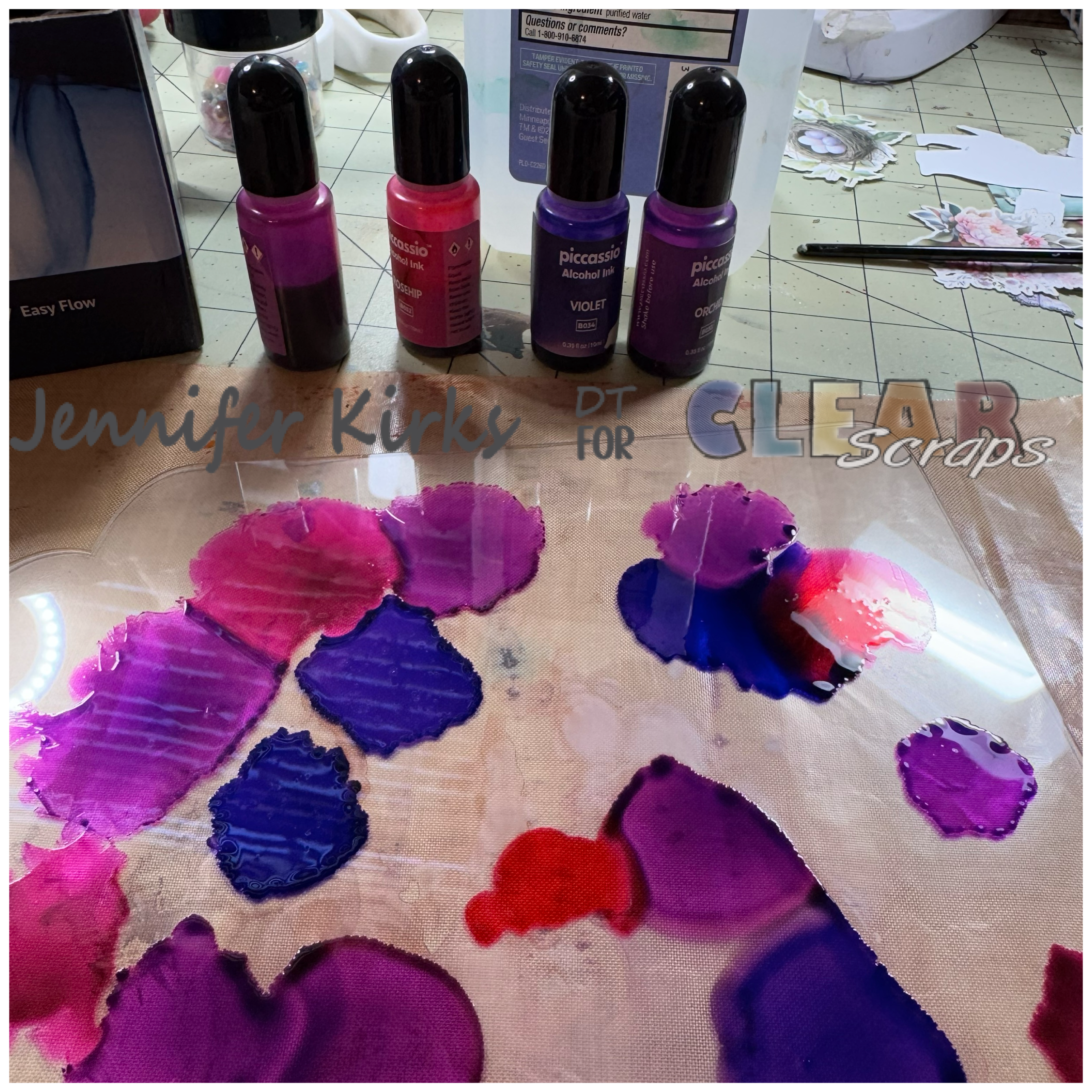 As for the acrylic pieces, I peeled back the film on one side (don't forget this step—it's key!), then applied some vibrant alcohol inks. To create a beautiful water effect, I took a splatter brush and flicked a bit of alcohol onto the surface, letting it create those dreamy, fluid patterns. It’s all about those little details that really bring the project to life!