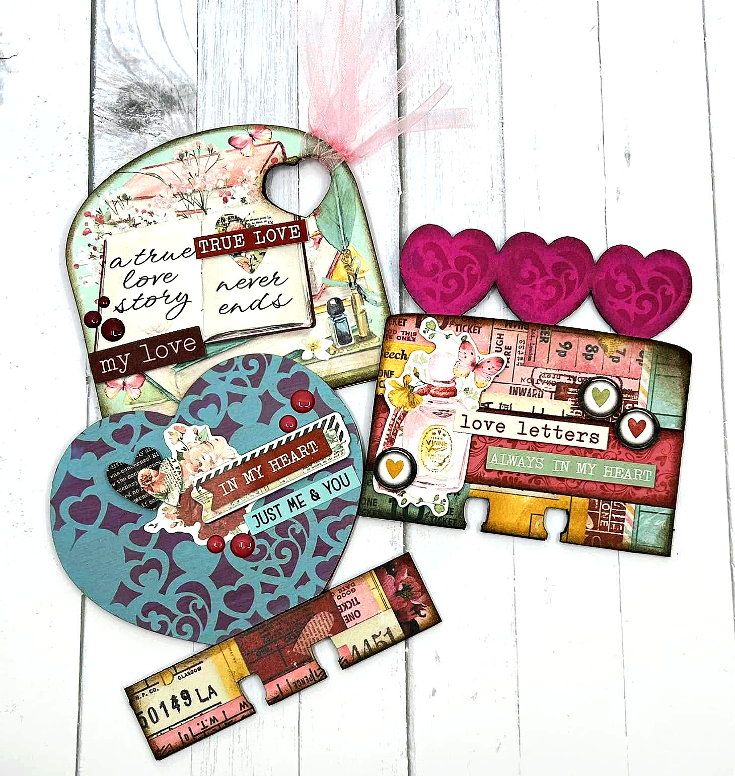 These cards were created using up scraps from a scrapbook LO I made (make sure to stop back in just over a week to see that!). The base cards are the Clear Scraps Hearts Chip Dividers 3pk. These are a great simple base to start with and these cards are great for making a Valentine's Day, Anniversary, Love, or Wedding Memory-Dex box, to name a few. I used a combo of paint and tracing and cutting out on pretty patterned papers.