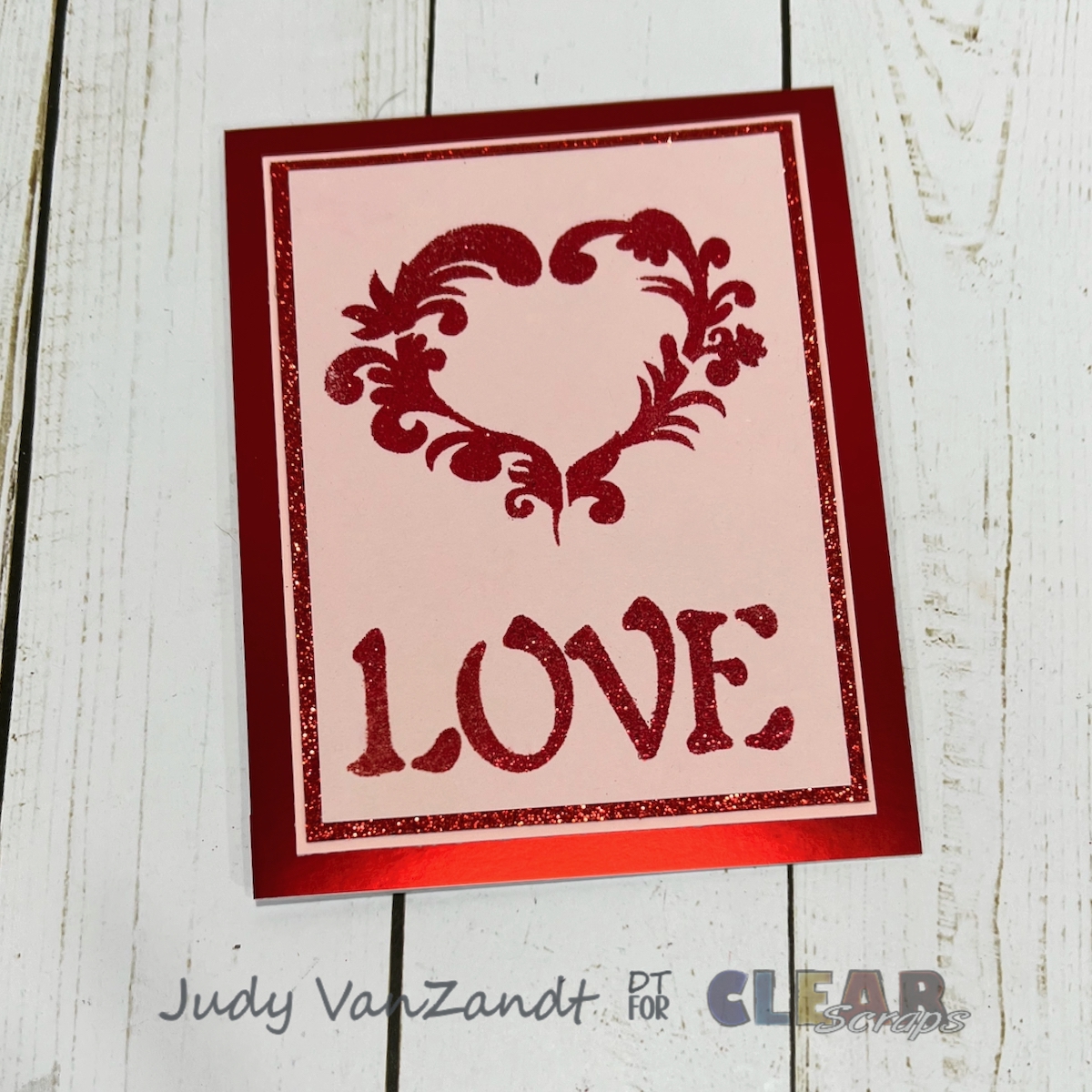 Clear Scraps has a great assortment of stencils that can be used in a variety of ways for your crafting. I really am not one to do a lot of stenciling but I have the 4 x 6 Love Stencil and thought it would make a great card.