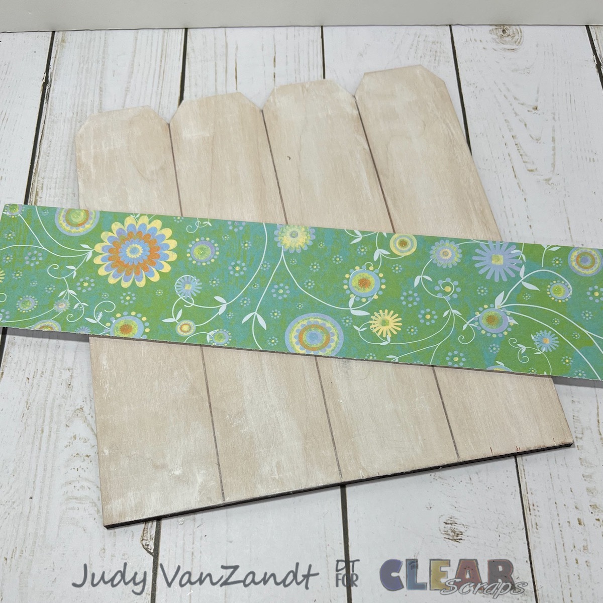 To add a little color to the fence, I cut a piece of patterned card stock to apply to the center horizontally.