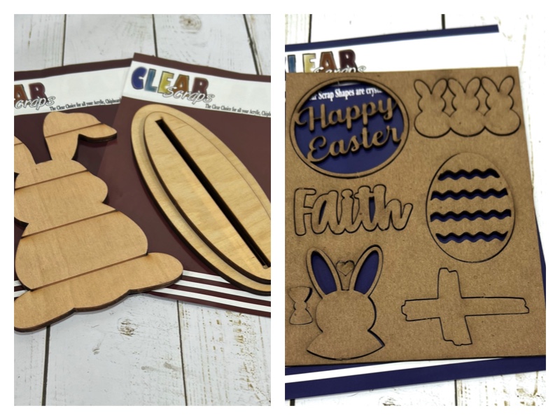 I am using 3 products, the Small Bunny Shiplap Shape, Medium Wood Stand and the Faith Embellishment Chipboard Punchout.