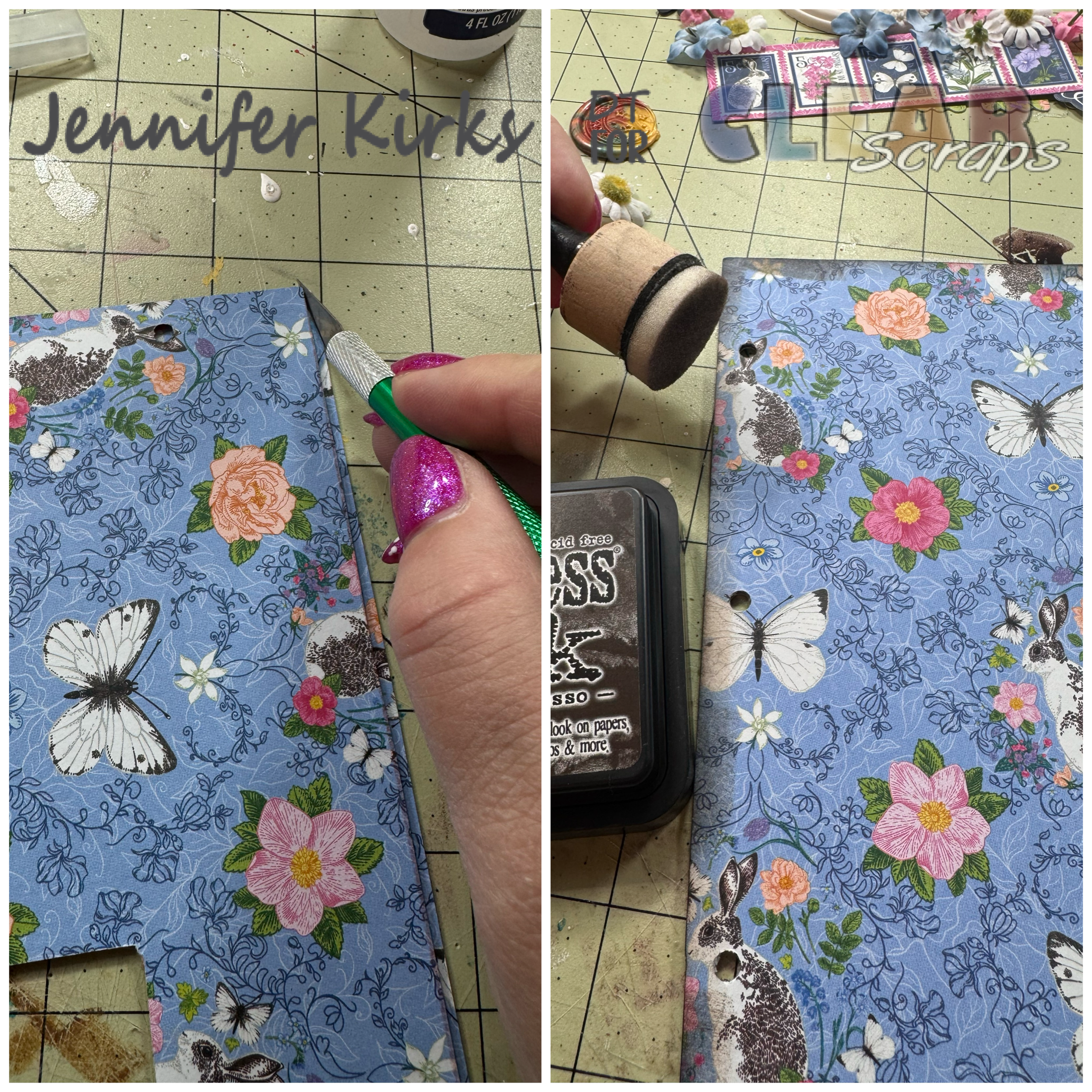 I began by carefully selecting the perfect papers to adorn each side of the chipboard pieces. After tracing each one, I meticulously cut, glued, and then used an X-Acto knife to perfect the edges. To add depth and dimension, I reached for my trusty brown ink and gently inked the edges, giving them a warm, vintage touch.